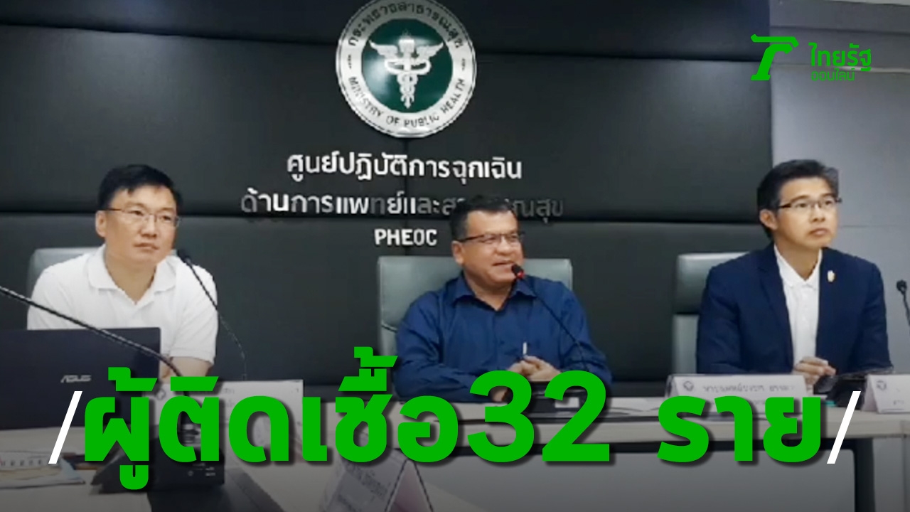 สธ.เผยผู้ติดเชื้อไวรัสโคโรนาสายพันธุ์ใหม่ 2019 ในไทยอยู่ที่ 32 ราย ย้ำเชื้อแพร่ทางละอองฝอยน้ำลายจากการไอและจาม แนะประชาชนสวมหน้ากากอนามัยร่วมกับหมั่นล้างมือ ช่วยลดความเสี่ยงได้