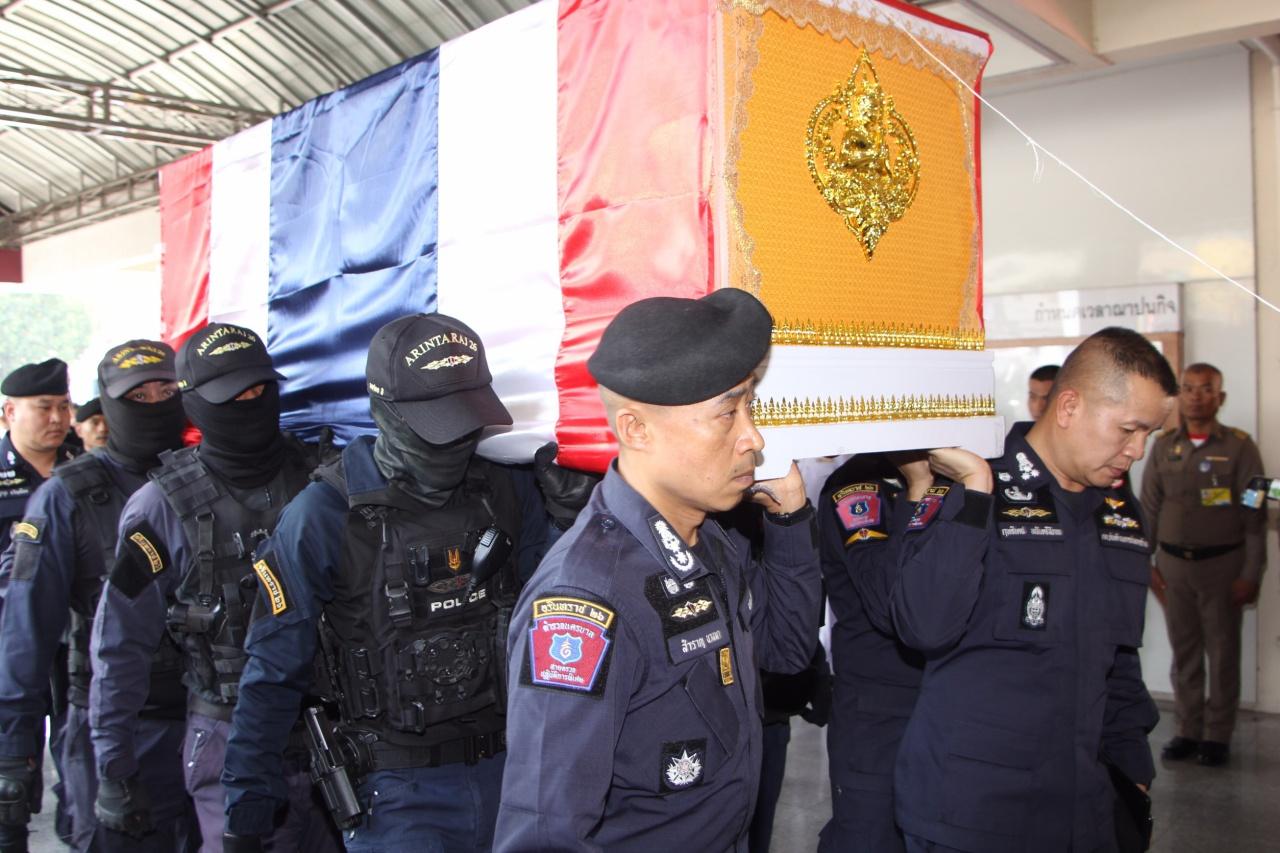 เมื่อเวลา 13.00 น. วันที่ 10 ก.พ.62 ผู้สื่อข่าวรายงานบรรยากาศภายในศาลา 5/1 วัดตรีทศเทพวรวิหาร เจ้าหน้าที่ฝ่ายฌาปนกิจสงเคราะห์สำนักงานตำรวจแห่งชาติ ได้จัดเตรียมสถานที่ในพิธีบำเพ็ญกุศลศพและพิธีพระราชทานน้ำหลวงอาบศพ ร.ต.อ.ตระกูล ทาอาษา อายุ 35 ปี ผบ.หมวด (สบ.1) กองร้อยปฏิบัติการพิเศษที่ 2 กก. ต่อต้านการก่อการร้าย บก.สปพ. และ ด.ต.เพชรรัตน์ กำจัดภัย อายุ 35 ปี ผบ.หมู่ กองร้อยปฏิบัติการพิเศษที่ 2 กก. ต่อต้านการก่อการร้าย บก.สปพ. โดยมีข้าราชการตำรวจในสังกัด บช.ก. และ บช.น. รวมถึงเพื่อนข้าราชการตำรวจในสังกัด บก.สปพ. ตั้งแถวรอรับศพ