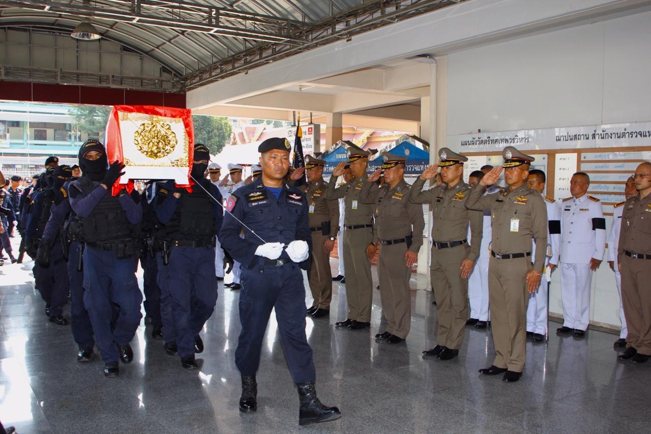 ขบวนรถเกียรติยศนำโลงที่บรรจุร่าง 2 นายตำรวจวีรบุรุษอรินทราช จากเหตุกราดยิงโคราช เดินทางมาถึงวัดตรีทศเทพวรวิหาร ก่อนจะเคลื่อนร่างตั้งไว้ยังศาลา 5/1 รอพระราชทานน้ำหลวงอาบศพในเวลา 5 โมงเย็น