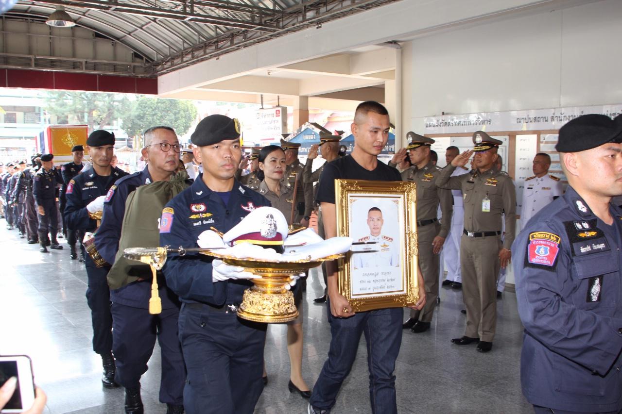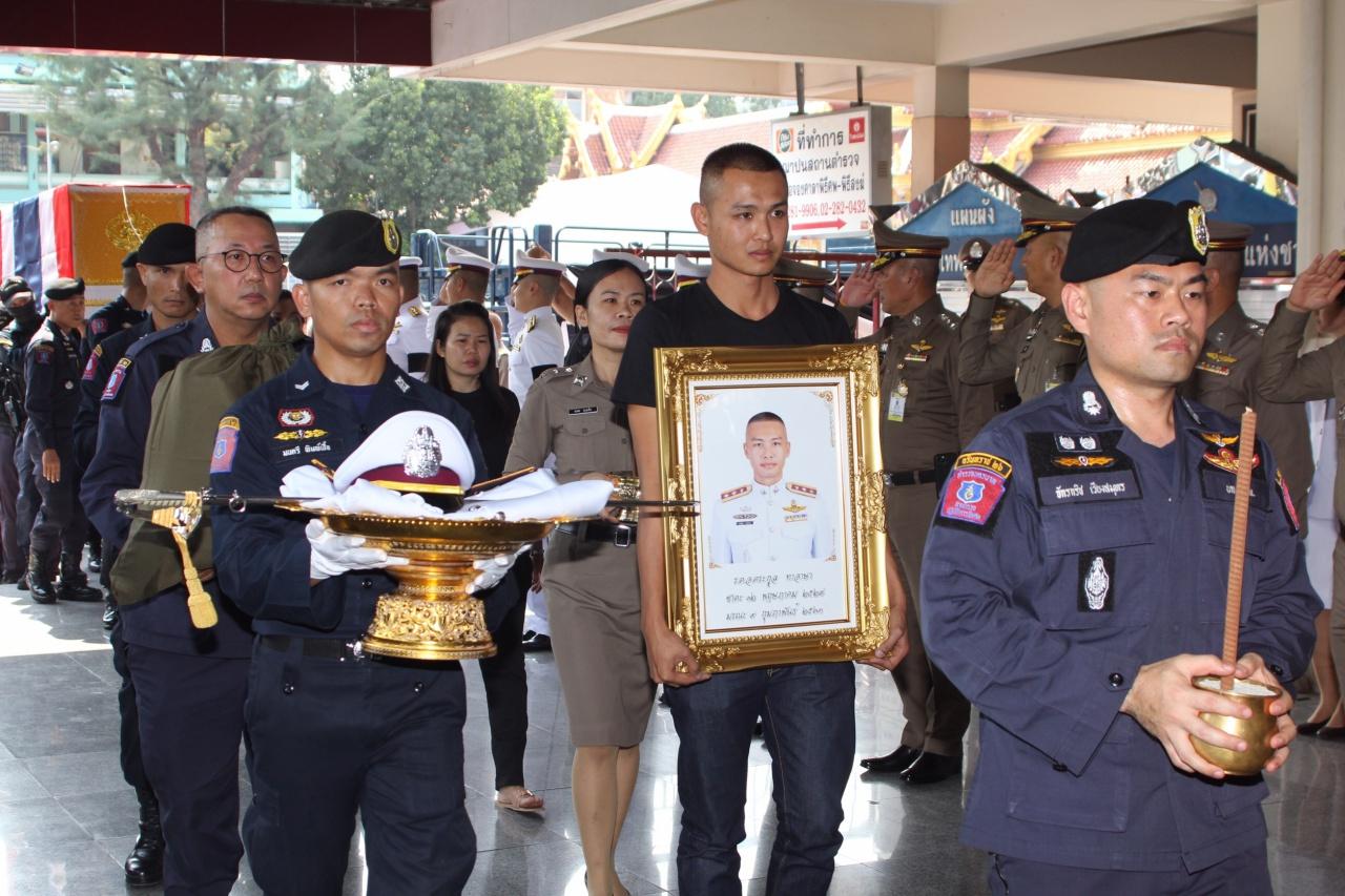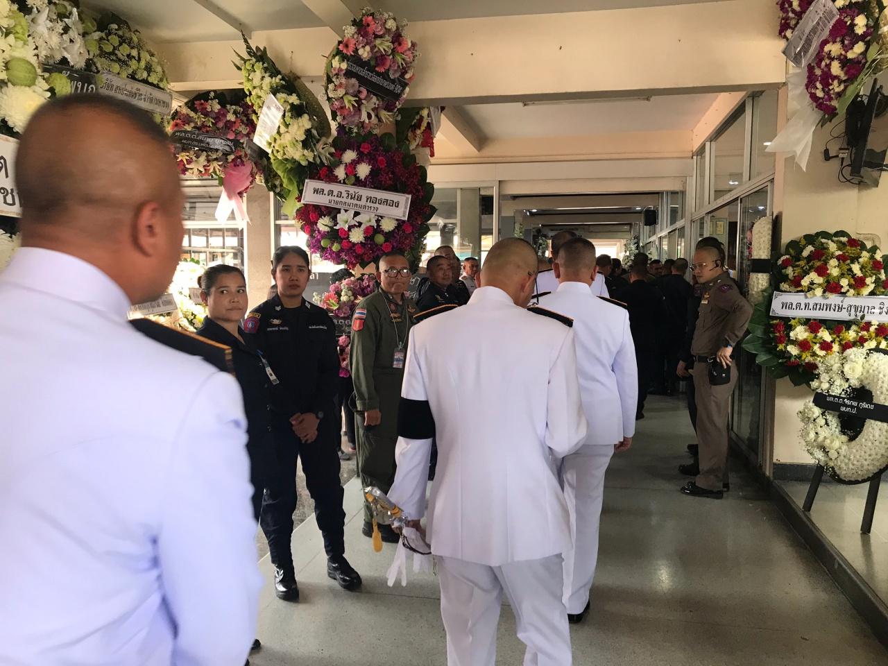 พ.ต.ต.ธีร์ธดลว์ พันธ์สนิท สว.ฝ่ายฌาปนกิจสงเคราะห์สำนักงานตำรวจแห่งชาติ เปิดเผยว่า หลังจากขบวนร่างของนายตำรวจทั้ง 2 นายมาถึงก็จะนำเข้าไปภายในศาลาเพื่อให้ผู้บังคับบัญชาญาติและเพื่อนข้าราชการตำรวจรดน้ำศพ จากนั้นในเวลา 17.00 น. จะมีพิธีพระราชทานน้ำหลวงอาบศพอีกครั้ง ทั้งนี้ได้เตรียมสถานที่ไว้รองรับสำหรับประชาชนทั่วไปที่จะร่วมไว้อาลัยวีรบุรุษทั้งสองคนบริเวณโดยรอบศาลาไว้ด้วย