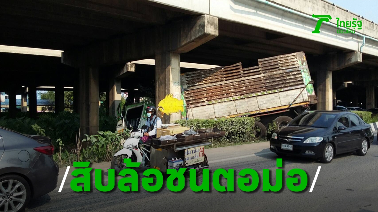 เกิดอุบัติเหตุรถสิบล้อชนตอม่อใต้สะพานจุดกลับรถ บนถนนกาญจนาภิเษก คนขับติดคารถออกไม่ได้ จนท.กู้ภัยต้องใช้เครื่องมือตัดถ่างงัดร่างออกมา ก่อนนำส่งรพ. ด้านโชเฟอร์ แจง พวงมาลัยขัดข้อง