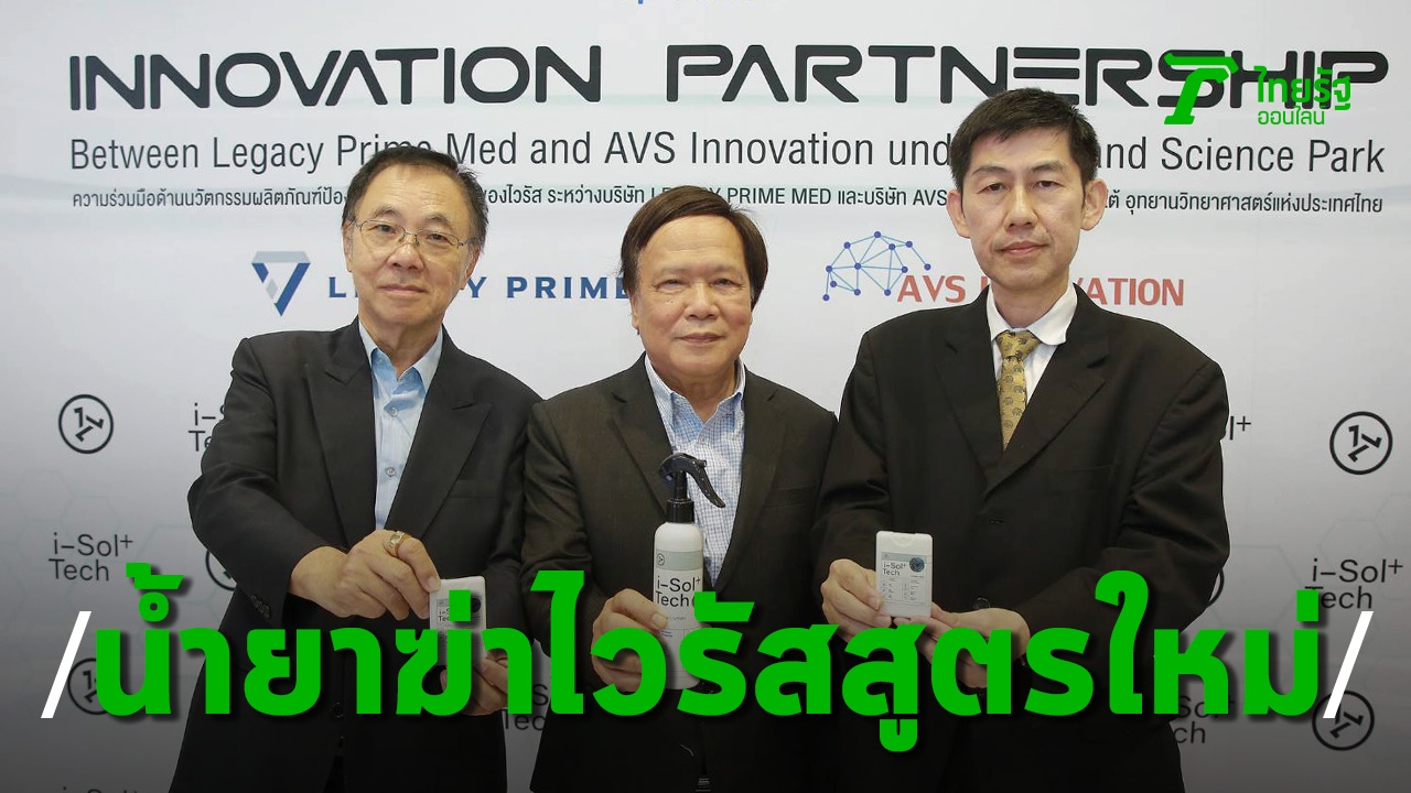 เมื่อวันที่ 6 มีนาคม 2563 ที่อาคารกลุ่มนวัตกรรม 2 อุทยานวิทยาศาสตร์ประเทศไทย อ.คลองหลวง จ.ปทุมธานี ศ.นพ.ธีระวัฒน์ เหมะจุฑา หน.ศูนย์วิทยาศาสตร์สุขภาพโรคอุบัติใหม่ คณะแพทย์ศาสตร์ รพ.จุฬาลงกรณ์ สภากาชาดไทย นายอภิวัฒน์ เฟื่องฟู กก.บ.เลกาซี่ ไพร์ม เมด จก. และ รศ.ดร.นพ.กำพล ศรีวัฒนกุล ปธ.กก.และผู้ก่อตั้ง บ.เอวีเอส อินโนเวชั่น จก. ภายใต้อุทยานวิทยาศาสตร์แห่งประเทศไทย ร่วมกันแถลงข่าว การพัฒนาสูตรน้ำยาฆ่าเชื้อไวรัส ภายใต้เทคโนโลยี “i-Sol+ Tech” ที่เป็นสูตรปราศจากแอลกอฮอล์