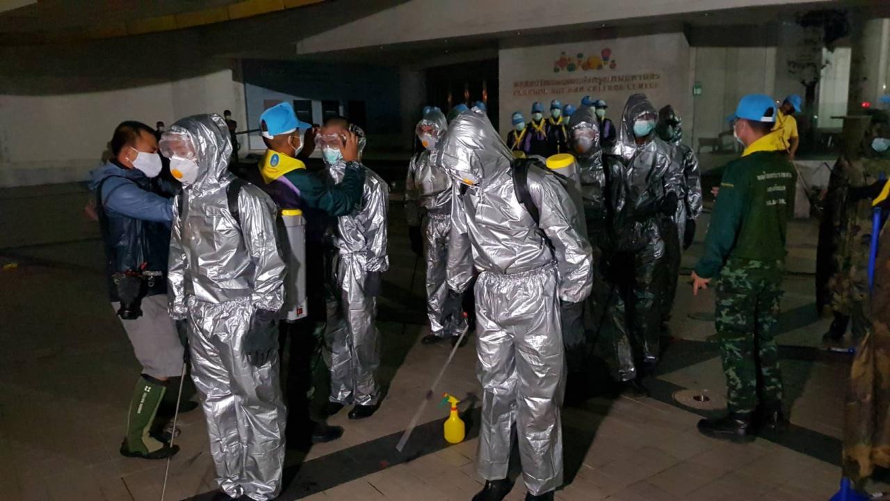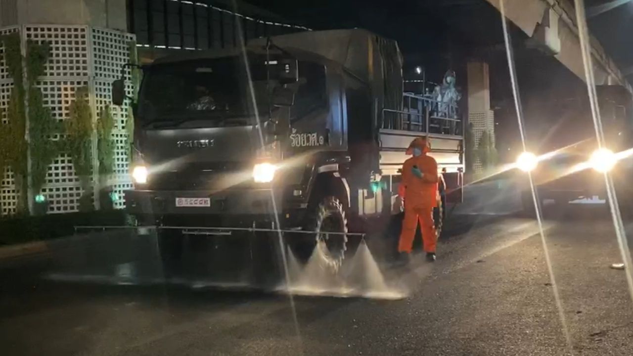 ต่อมาเวลา 02.00 น. เจ้าหน้าที่ทหารจากกองทัพภาคที่ 1 ได้ส่งรถน้ำและสารฆ่าเชื้อ เพื่อทำความสะอาดบนทางเท้าและถนน ตามมาตรการควบคุมเชื้อโควิด-19 ในพื้นที่กรุงเทพฯ โดยเริ่มทำตั้งแต่วันนี้จนถึงวันที่ 31 มี.ค.ตั้งแต่เวลา 01.00-05.00 น. โดยบริเวณแยกปทุมวัน หน้าลานหอศิลปวัฒนธรรมกรุงเทพ พล.ต.ท.ภัคพงศ์ ภงษ์เภตรา ผบช.น.ได้เดินทางมาตรวจความเรียบร้อยที่จุดนี้ และพาสื่อมวลชนเดินตรวจถึงแยกราชประสงค์ไปกลับผ่านถนนพระราม 1 ใช้ระยะทางรวม 2 กิโลเมตร โดย สน.ปทุมวันได้ทำการปิดการจราจร เพื่อให้รถบรรทุกน้ำฉีดสารเคมีฉีดน้ำนำ และมีเจ้าหน้าที่ทหารใส่ชุดป้องกันฉีดสารเคมีแบกสารเคมีฉีดลอยขึ้นไปในอากาศ และมีทหาร ตำรวจ เทศกิจในชุดจิตอาสาพระราชทานทำความสะอาดพื้นที่โดยรอบร่วมกับทหารด้วย