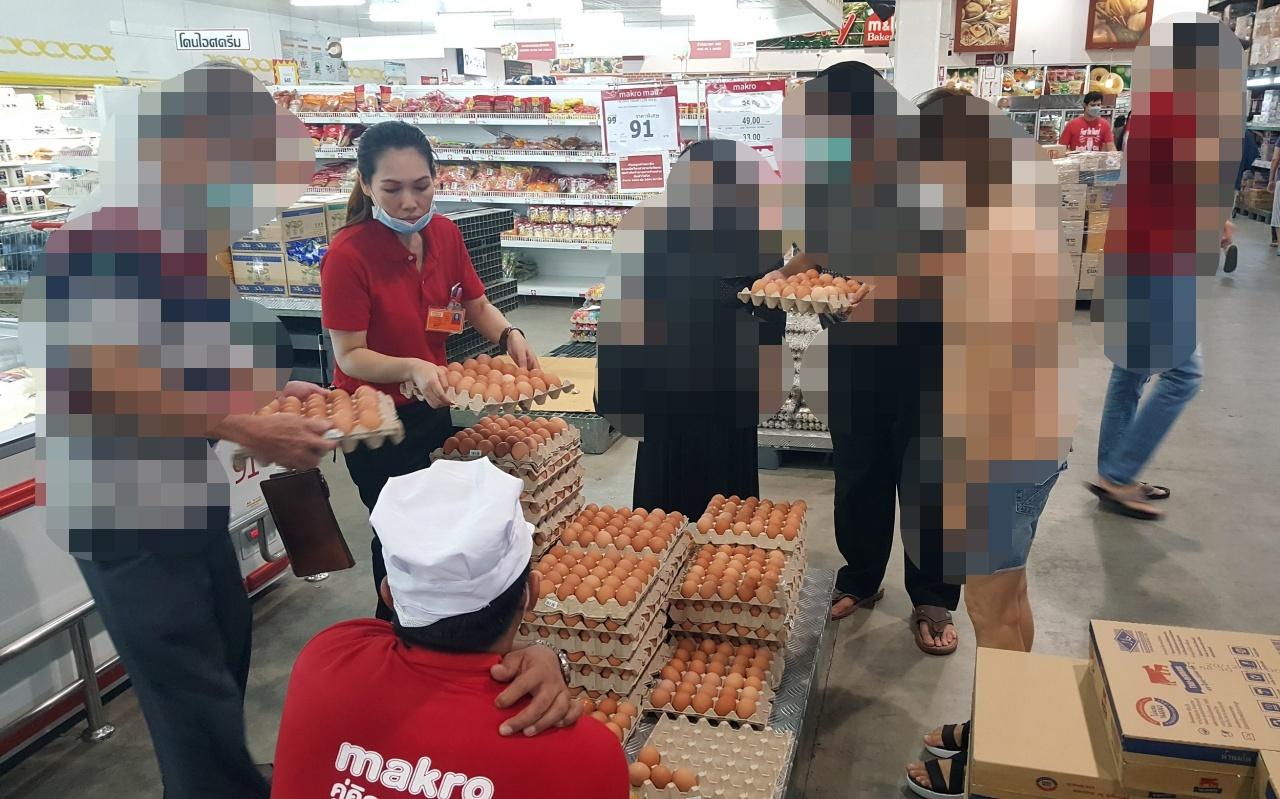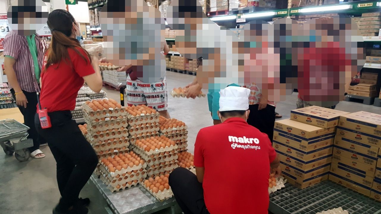 ประชาชนแห่มารอต่อคิวซื้อไข่ไก่สด เพื่อเก็บไว้กินที่บ้าน จนแน่นแม็คโคร สาขาแจ้งวัฒนะ ใช้เวลาไม่นานไข่ไก่สดก็จำหน่ายหมดลงรวดเร็ว ชาวบ้านโอดหาซื้อไข่ไม่ได้ พนักงานแจง ผลผลิตน้อย แถมเจอคนซื้อตุน