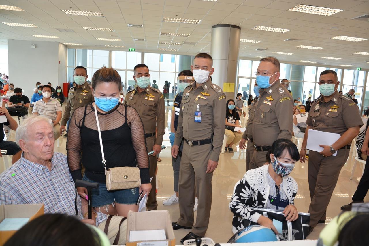 ต่อมาเมื่อเวลา 11.45 น. พล.ต.ท.สมพงษ์ ชิงดวง ผบช.สตม.เดินทางมาตรวจสถานที่และเจ้าหน้าที่เพื่อดูความเรียบร้อยในการให้บริการกับผู้มาติดต่อ โดยมี พล.ต.ต.ปิติ นิธินนทเศรษฐ์ ผบก.ตม.1 เป็นผู้ควบคุมการปฏิบัติในการให้บริการของเจ้าหน้าที่