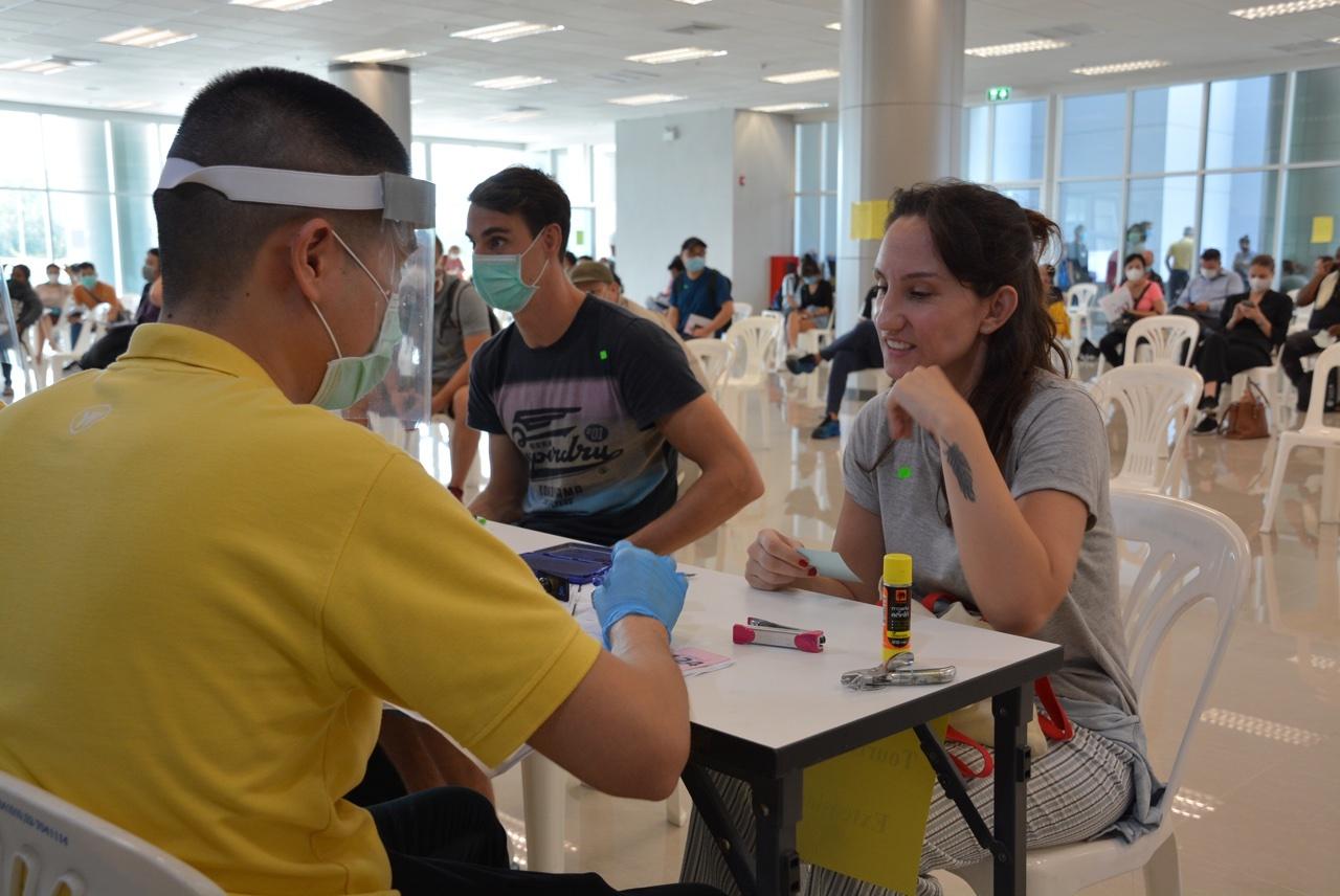 ชาวต่างชาติจำนวนมากทยอยเดินทางมา บชก.ใหม่ เมืองทองธานี เพื่อติดต่อ ตม.1 ส่วนขยายจากศูนย์ราชการทำวีซ่าขออยู่ต่อ หลังเกิดการแพร่ระบาดของโควิด-19 ในหลายประเทศ จนไม่สามารถเดินทางกลับประเทศได้