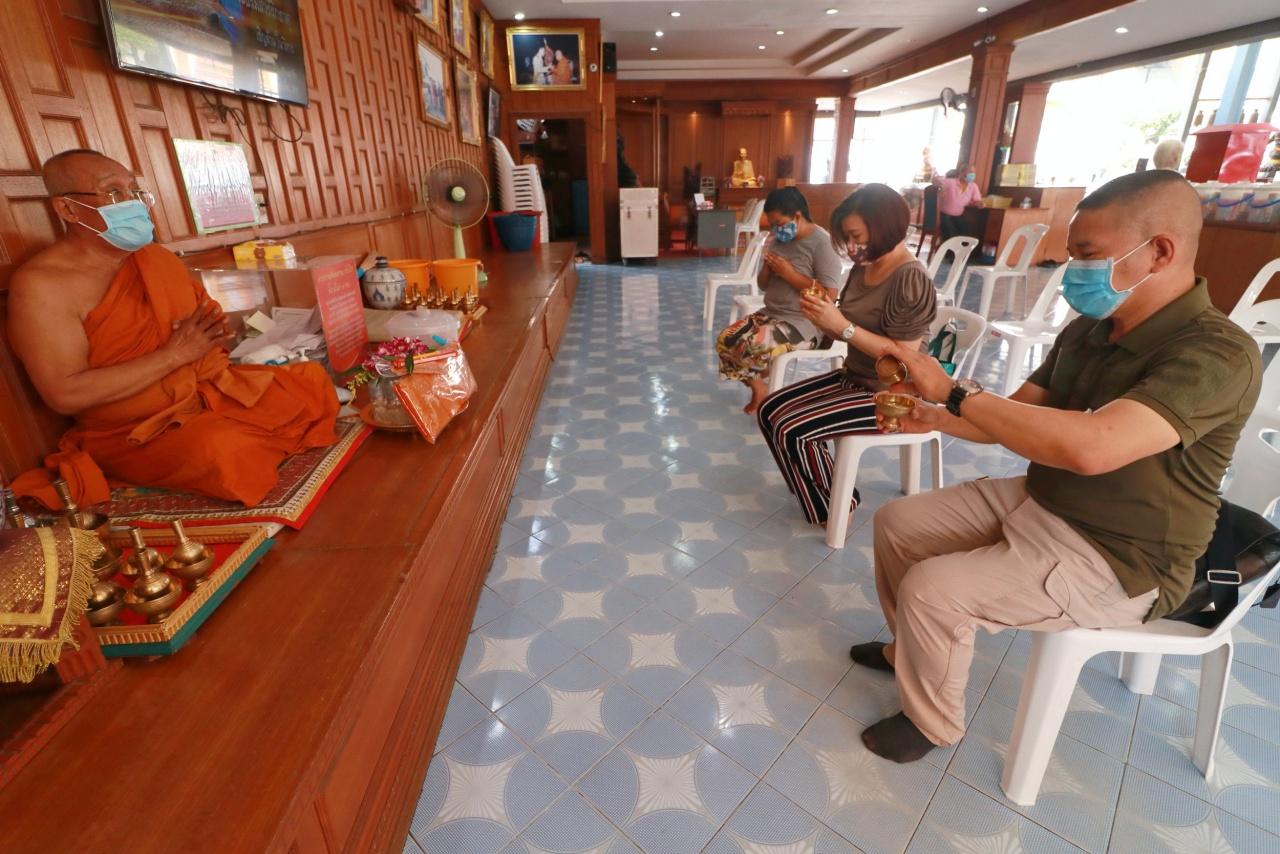 เช่นที่ บริเวณศาลาสำหรับถวายสังฆทาน มีการจัดเก้าอี้ให้ญาติโยมนั่งเว้นระยะห่าง ห่างกันที่ละ 1 เมตร และห่างจากพระ 1 เมตร พร้อมตั้งจุดบริการเจลแอลกอฮอล์ล้างมือที่หน้าศาลา สำหรับถังสังฆทานที่ทางวัดตระเตรียมไว้ให้บริการก็มีเจ้าหน้าที่มาทำการฉีดพ่นแอลกอฮอล์ทำความสะอาดต่อเนื่อง การปฏิบัติในช่วงถวายสังฆทานนั้นพระที่รับสังฆทานตลอดจนญาติโยมที่เข้ามาถวายก็จะต้องสวมหน้ากากอนามัย และเว้นระยะห่างกัน เสร็จพิธีแล้วให้ล้างมือด้วยเจลแอลกอฮอล์ สร้างความมั่นใจให้ญาติโยมที่มาทำบุญโดยทั่วหน้า