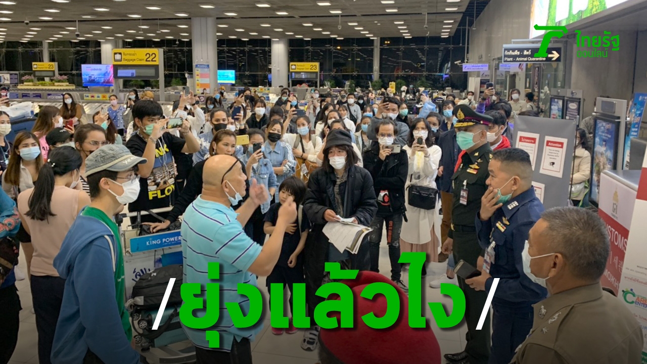 กลุ่มผู้โดยสารที่เดินทางมาถึงสุวรรณภูมิ ต่างเรียกร้องให้รัฐบาลส่งตัวแทนมาชี้แจง และมีท่าทีจะลุกลามเป็นการชุมนุมต่อต้านเจ้าหน้าที่รัฐ แต่ต่อมาเจ้าหน้าที่ทหารระดับพลตรี ได้เข้ามาควบคุมสถานการณ์ และเปิดการเจรจากับผู้เดินทาง โดยใช้เวลาประมาณ 20 นาที ก่อนจะอนุญาตให้ทุกคนเดินทางกลับบ้านได้ โดยกำชับให้ทุกคนต้องกักตัวเอง 14 วัน แม้ว่าเจ้าหน้าที่กระทรวงสาธารณสุขจะคัดค้าน แต่ไม่สามารถควบคุมตัวผู้เดินทางทั้งหมดได้