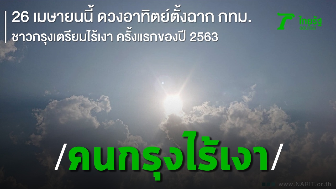 วันนี้ (26 เม.ย.63) ชาวกรุงเทพฯ เตรียมไร้เงา ครั้งแรกของปี 2563 เมื่อดวงอาทิตย์ตั้งฉากตรงกับกรุงเทพฯ เงาของร่างกายจะตกอยู่ที่ใต้เท้าพอดี เมื่อออกไปยืนกลางแดด และไม่ใช่วันที่ร้อนที่สุด