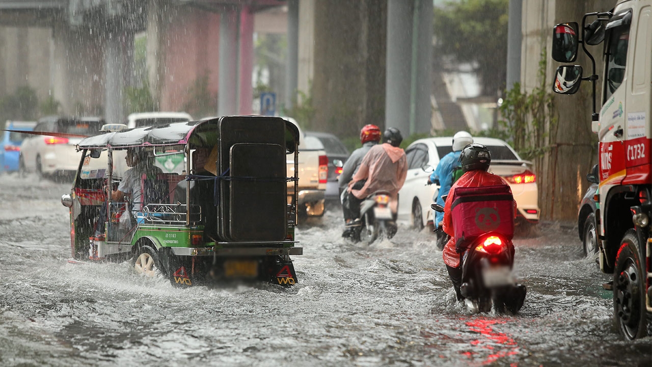 สภาพน้ำท่วมบนถนนพหลโยธินช่วงหน้าห้างเซ็นทรัล ลาดพร้าว หลังเกิดฝนหลงฤดูกระหน่ำลงมาพร้อมลมกระโชกทำให้การจราจรบริเวณนั้นชะลอตัว สร้างความลำบากให้ประชาชนที่สัญจรไปมา ภาพจากไทยรัฐออนไลน์.
