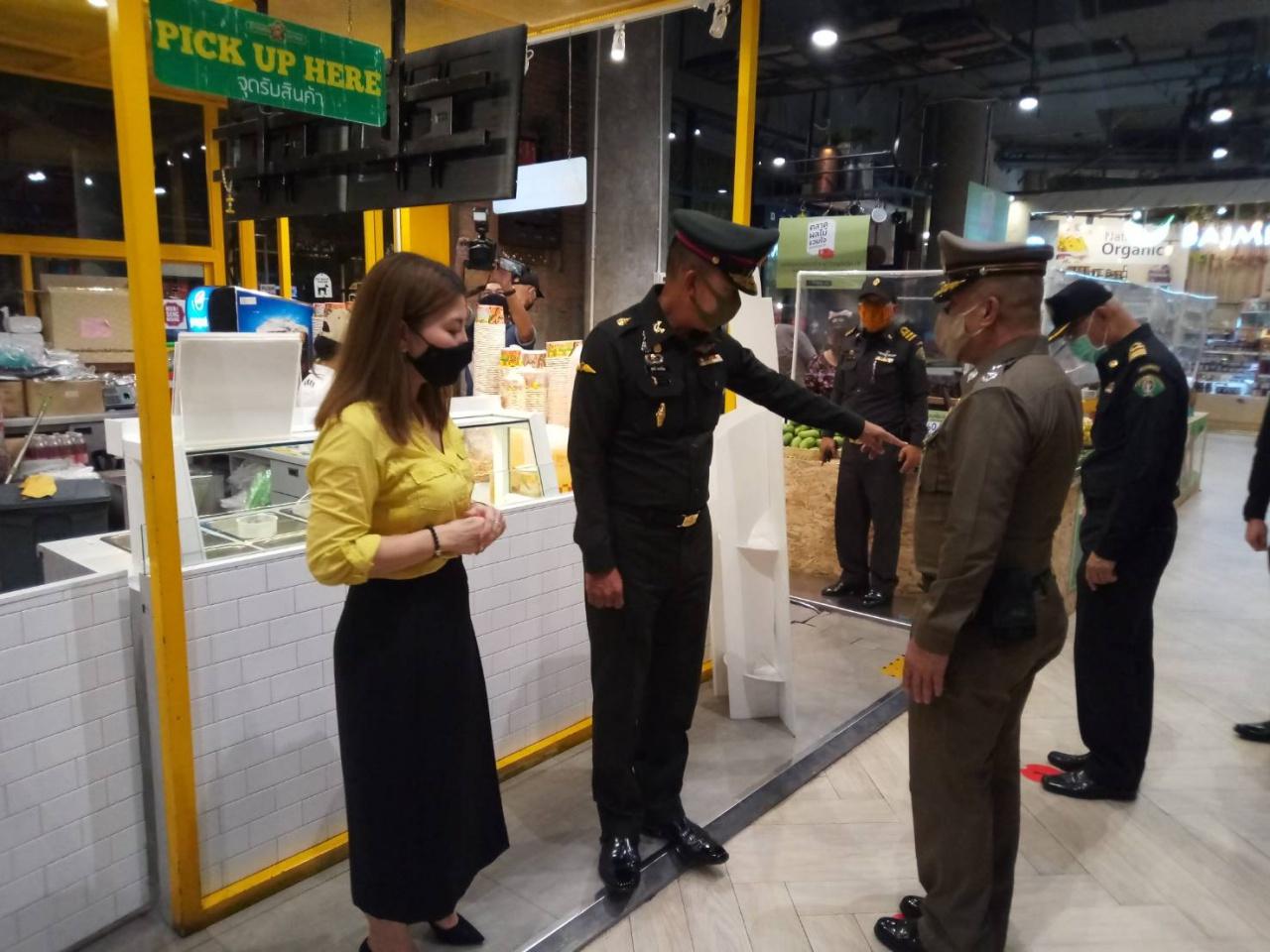ทั้งนี้ ที่ศูนย์การค้าเซ็นทรัลเฟสติวัล อีสต์วิลล์ คณะตรวจการประกอบกิจการและกิจกรรมตามมาตรการผ่อนคลาย ได้ไปตรวจความเรียบร้อยการปฏิบัติตามมาตรการบริเวณโซนซุปเปอร์มาร์เก็ต โซนสั่งอาหารกลับบ้านและเดลิเวอรี่ รวมถึงโซนร้านอาหาร และบริเวณลิฟต์ไร้สัมผัส ซึ่งไม่ต้องใช้มือกด เพื่อป้องกันการติดเชื้อโควิด-19 จากนั้นได้ไปตรวจบริเวณตลาดนัดหัวมุม ซึ่งมีร้านอาหาร และร้านค้าต่างๆ เปิดขายอยู่น้อย เนื่องจากก่อนหน้านี้มีฝนตกลงมา โดยมีประชาชนมาจับจ่ายซื้อของบางตากว่าปกติ.