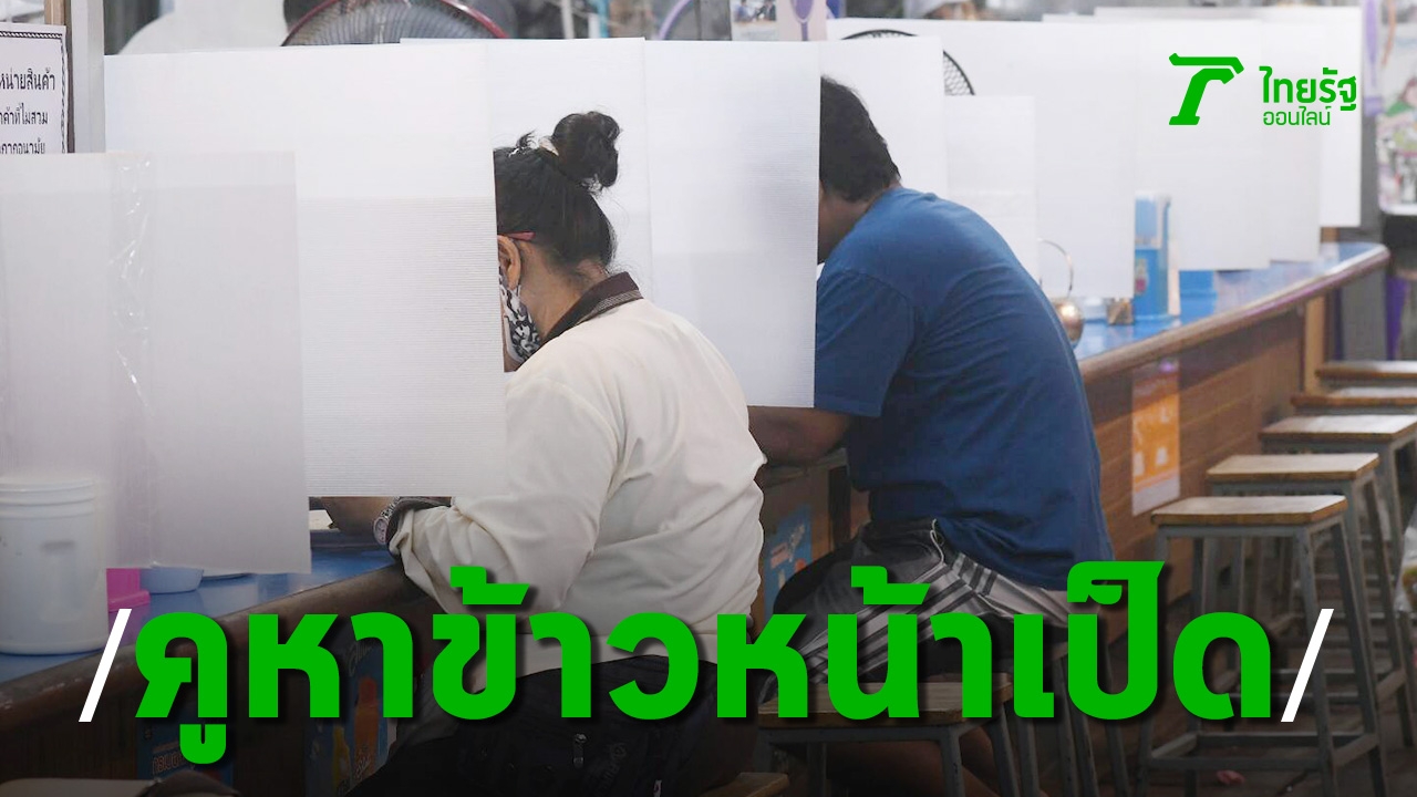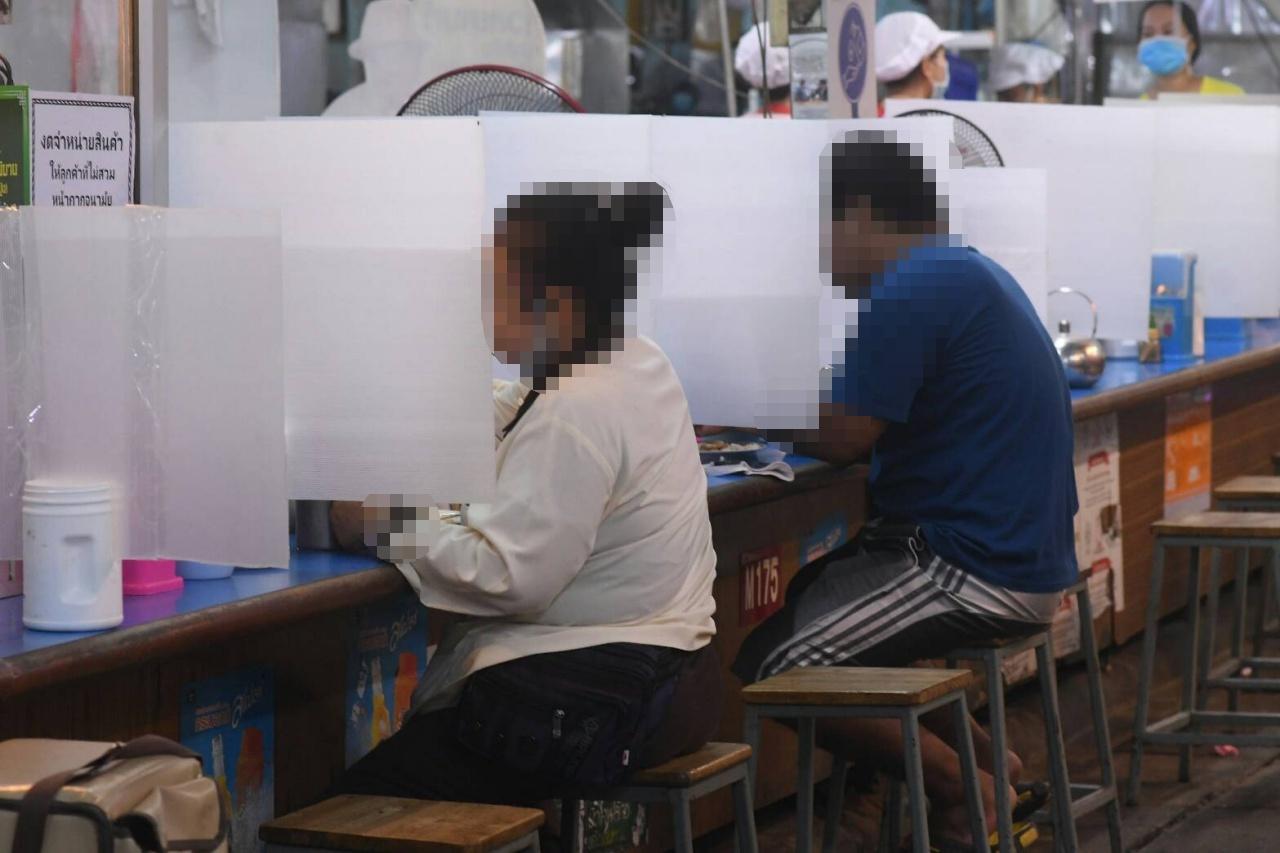 ร้านนงนุช เป็ดย่างเนื้อนุ่ม ข้าวหน้าเป็ด ที่ตลาดเตาปูน ปรับเข้าสู่วิถีชีวิตแบบใหม่หลังช่วงโควิด-19 ระบาด ทำฉากกั้นเหมือนคูหาเลือกตั้ง ให้คนนั่งกันได้โดยเว้นระยะห่าง โดยหวังว่าแล้วมันจะดีขึ้น