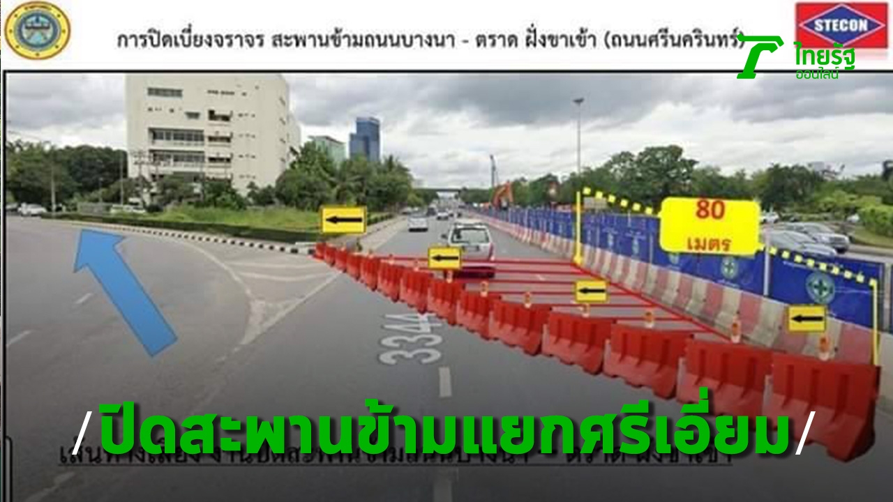 ทั้งนี้ขณะดำเนินการ รถที่ประสงค์ใช้ถนนศรีนครินทร์ ฝั่งขาเข้า ขึ้นสะพานข้ามแยกศรีเอี่ยม มุ่งหน้าบางกะปิ ให้เบี่ยงวิ่งพื้นราบ แล้วไปเลี้ยวซ้ายออก ถนนบางนา-ตราด แล้วใช้สะพานกลับรถที่หน้า บ.ไทย ซี แซด ฟิล์ม วิ่งตรงมาถึงแยกวัดศรีเอี่ยม เลี้ยวซ้าย เข้าถนนศรีนครินทร์ ใช้เส้นทางตามปกติ