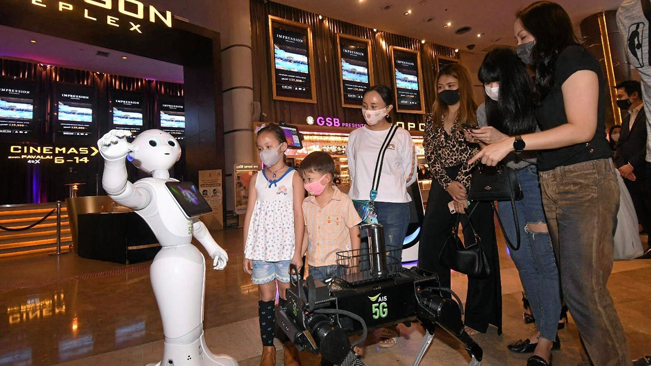 ทั้งเด็กทั้งผู้ใหญ่ให้ความสนใจกับหุ่นยนต์อัจฉริยะของเอไอเอสที่โรงภาพยนตร์พารากอน ซีนีเพล็กซ์ นำมาใช้ตามมาตรการรับมือโควิด ทั้งวัดอุณหภูมิ ต้อนรับและแสดงตัวอย่างภาพยนตร์ที่กำลังเข้าฉายสร้างสีสันให้ผู้เข้ามาใช้บริการ.