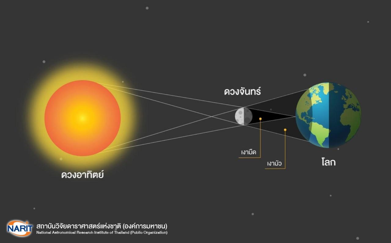 “สุริยุปราคา” เป็นปรากฏการณ์ที่ดวงอาทิตย์ ดวงจันทร์ และโลก โคจรมาอยู่ในแนวเดียวกัน มีดวงจันทร์อยู่ตรงกลาง เมื่อสังเกตจากโลกจะเห็นดวงจันทร์เคลื่อนที่เข้ามาบดบังดวงอาทิตย์ สำหรับ “สุริยุปราคาบางส่วน” เกิดจากโลก ดวงจันทร์ และดวงอาทิตย์ไม่ได้เรียงอยู่ในแนวเดียวกัน ขณะเกิดสุริยุปราคาบางส่วน ดวงจันทร์จึงบดบังดวงอาทิตย์เพียงบางส่วนเท่านั้น ทำให้มีเพียงเงามัวของดวงจันทร์ทอดผ่านพื้นผิวโลก ผู้สังเกตบนโลกภายในบริเวณที่เงามัวของดวงจันทร์พาดผ่านจะเห็นดวงอาทิตย์ถูกดวงจันทร์บดบังเพียงบางส่วนเท่านั้น