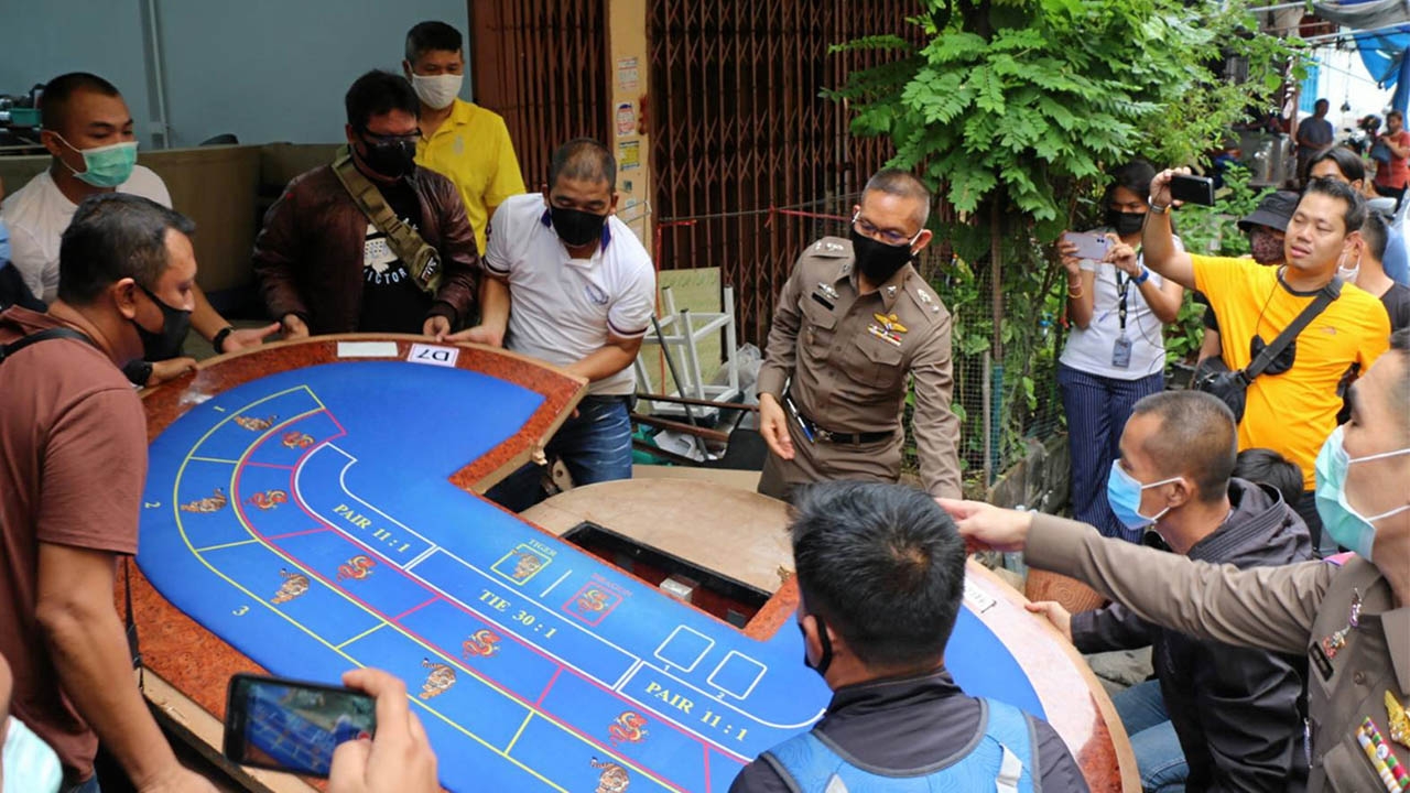 ตำรวจ สน.ทุ่งมหาเมฆ นำกำลังเข้ายึดของกลางอุปกรณ์เล่นพนัน ทั้งโต๊ะแจกไพ่ และอื่นๆอีกจำนวนมาก ที่ถูกนำมาซุกไว้ในตึกแถว 3 ชั้น ฝั่งตรงข้ามบ่อนพระราม 3 ซอย 66 หลังเกิดเหตุยิง 4 ศพ.
