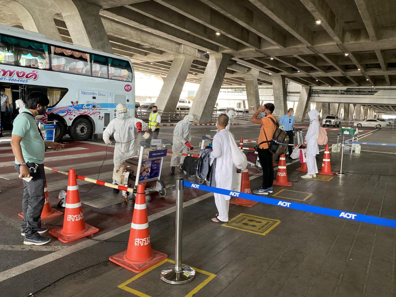 คนไทยต่างแดนกลับไทย 4 เที่ยวบิน ถึงสนามบินสุวรรณภูมิ ผู้โดยสารจำนวน 580 คน จากประเทศสหรัฐอเมริกา 2 เที่ยวบิน เยอรมนี อินเดีย ถึงโดยสวัสดิภาพ ไม่พบผู้มีไข้สูง เจ้าหน้าที่นำขึ้นรถบัสเพื่อดำเนินการกักตัว 14 วัน ตามมาตรการของรัฐ