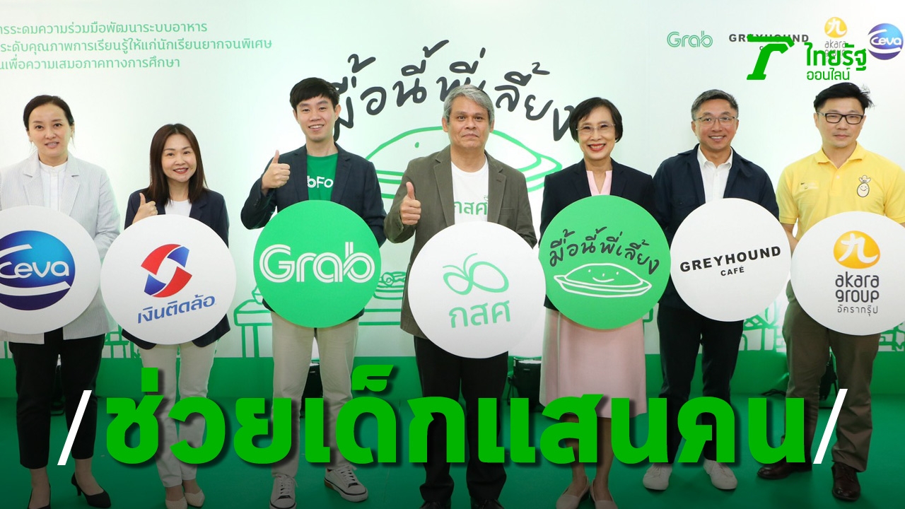 วันที่ 11 ก.ย. ที่กองทุนเพื่อความเสมอภาคทางการศึกษา (กสศ.) ร่วมกับ ภาคเอกชนชั้นนำ อาทิ แกร็บ ประเทศไทย เกรฮาวด์ คาเฟ่ เครือบริษัทแสงทองสหฟาร์มและอัครา กรุ๊ป จำกัด บริษัท ซีวา แอนิมัล เฮลธ์ (ประเทศไทย) จำกัด และบริษัท เงินติดล้อ จำกัด เปิดตัวแคมเปญ “มื้อนี้พี่เลี้ยง” หนึ่งในโครงการระดมความร่วมมือพัฒนาระบบอาหารเพื่อยกระดับคุณภาพการเรียนรู้ให้แก่เด็กนักเรียนยากจนพิเศษ