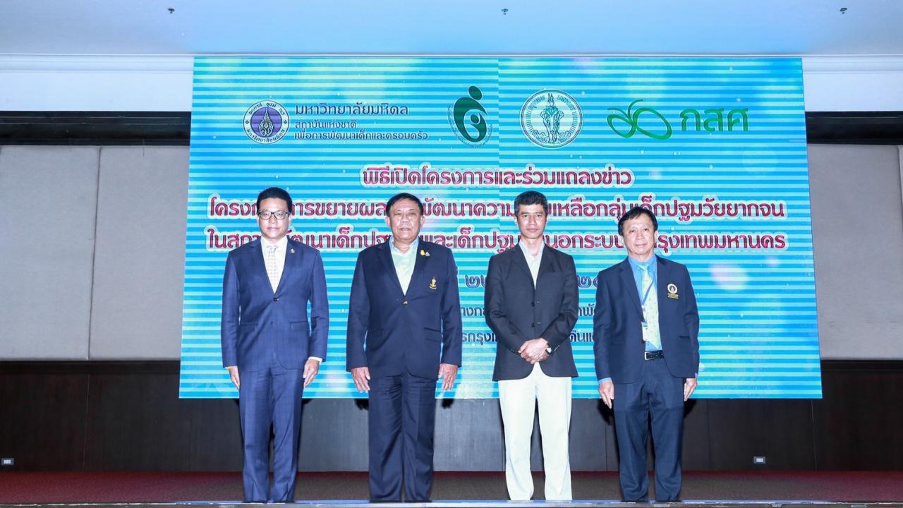 รศ.นพ.อดิศักดิ์ ผลิตผลการพิมพ์ ผู้อำนวยการสถาบันแห่งชาติเพื่อการพัฒนาเด็กและครอบครัว มหาวิทยาลัยมหิดล กล่าวว่า ปี 2561-2562 สถาบันได้ทำการศึกษากลุ่มเด็กยากจน 458 ครอบครัวในกรุงเทพมหานครและปริมณฑล 3 จังหวัด พบว่า กลุ่มเด็กยากจนขาดแคลนที่มีภาวะวิกฤติครอบครัว ร้อยละ 53.5 มีการแตกแยกหย่าร้างของพ่อแม่ ร้อยละ 25.3 มีความรุนแรงในครอบครัว ร้อยละ 14 ผู้เลี้ยงดู มีการใช้สารเสพติด ร้อยละ 69 ได้รับการดูแลที่ไม่บรรลุผลสุขภาวะ ร้อยละ 24 มีพัฒนาการล่าช้า ร้อยละ 9 มีพัฒนาการล่าช้ามาก จึงได้ผลักดันนโยบายการคัดกรองเด็กกลุ่มเสี่ยงสูงและรูปแบบการเยี่ยมบ้านโดยทีมบูรณาการเพื่อแก้ปัญหากลุ่มเด็กยากจน โดยมีศูนย์พัฒนาเด็กปฐมวัยในชุมชนเป็นจุดเชื่อมโยงทีมบูรณาการในพื้นที่ ซึ่งโครงการการขยายผลและพัฒนาความช่วยเหลือกลุ่มเด็กปฐมวัยและเด็กปฐมวัยนอกระบบใน "กรุงเทพมหานคร” เพื่อยกระดับการพัฒนาเด็กปฐมวัยที่ยากจนและมีภาวะวิกฤติครอบครัว โดยใช้ศูนย์พัฒนาเด็กก่อนวัยเรียนในชุมชน (ศพด.) ที่อยู่ในการสนับสนุนของกรุงเทพมหานคร เป็นฐานสำคัญในการนำการช่วยเหลือและส่งเสริมพัฒนาการกลุ่มเด็กปฐมวัยยากจนในศูนย์พัฒนาเด็กก่อนวัยเรียน ไม่น้อยกว่า 10,000 คน และเด็กปฐมวัยนอกระบบ ไม่น้อยกว่า 1,000 คน และอาสาสมัครผู้ดูแลเด็กในศูนย์พัฒนาเด็กก่อนวัยเรียนกรุงเทพมหานคร จะได้รับการพัฒนาให้มีขีดความสามารถในการช่วยเหลือและส่งเสริมพัฒนาการกลุ่มเด็กยากจนที่มีภาวะความยากลำบาก แนวทางการทำงานที่ได้จะเป็นประโยชน์ในการขยายผลในเมืองต่างๆ ต่อไป