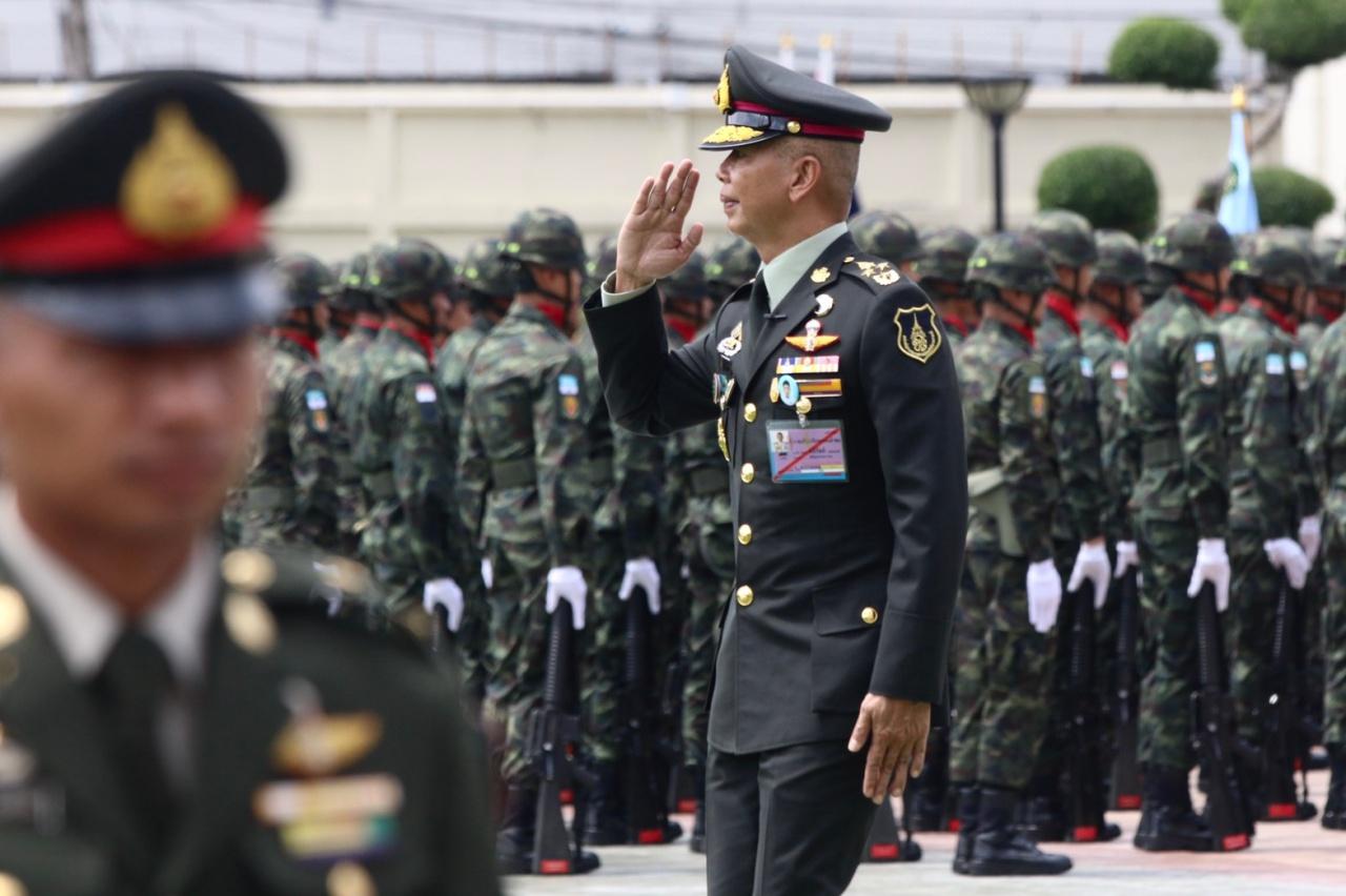 ทหารกองผสมนำกำลังพลจำนวน 3 กองพัน สวนสนามเพื่อเป็นเกียรติในพิธีรับส่งมอบหน้าที่ผู้บัญชาการทหารบก พล.อ.อภิรัชต์ คงสมพงษ์ ผบ.ทบ. มอบธงประจำตำแหน่งให้แก่ พล.อ.ณรงค์พันธ์ จิตต์แก้วแท้ ผบ.ทบ. คนใหม่
