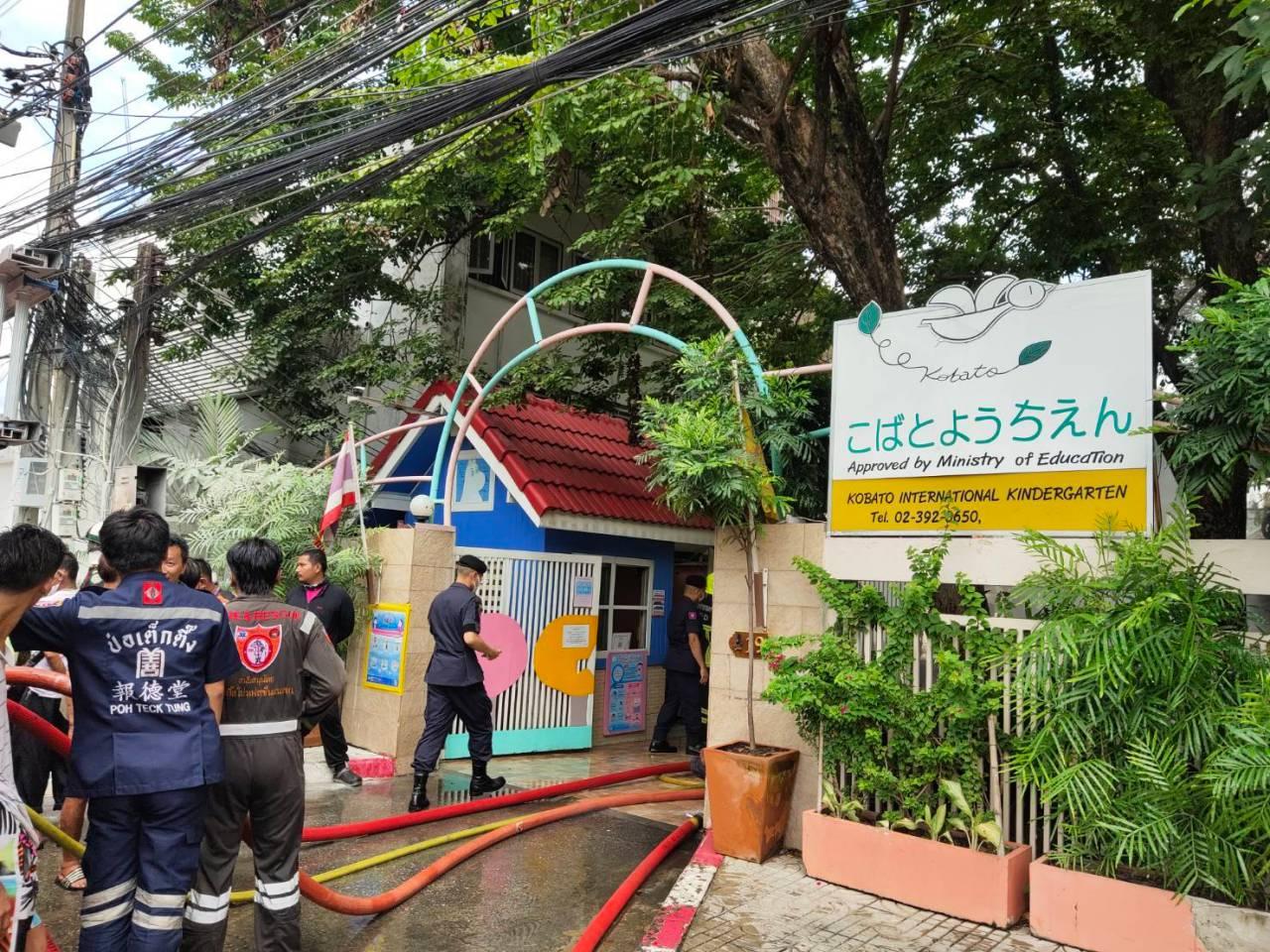 เมื่อเวลา 12.24 น. วันที่ 2 ต.ค. เจ้าหน้าที่สถานีดับเพลิงและหน่วยกู้ภัยคลองเตยไประงับเหตุเพลิงไหม้โรงจอดรถ โรงเรียนอนุบาลนานาชาติโคบาโตะ เลขที่ 25/1 ซอยสุขุมวิท 38 แขวงพระโขนง เขตคลองเตย กทม.ที่เกิดเหตุเป็นอาคารอเนกประสงค์สูง 2 ชั้น ชั้นล่างเป็นโรงจอดรถ พบเพลิงลุกไหม้ที่บริเวณรถยนต์ 2 คันก่อนลุกลามโรงจอดรถ