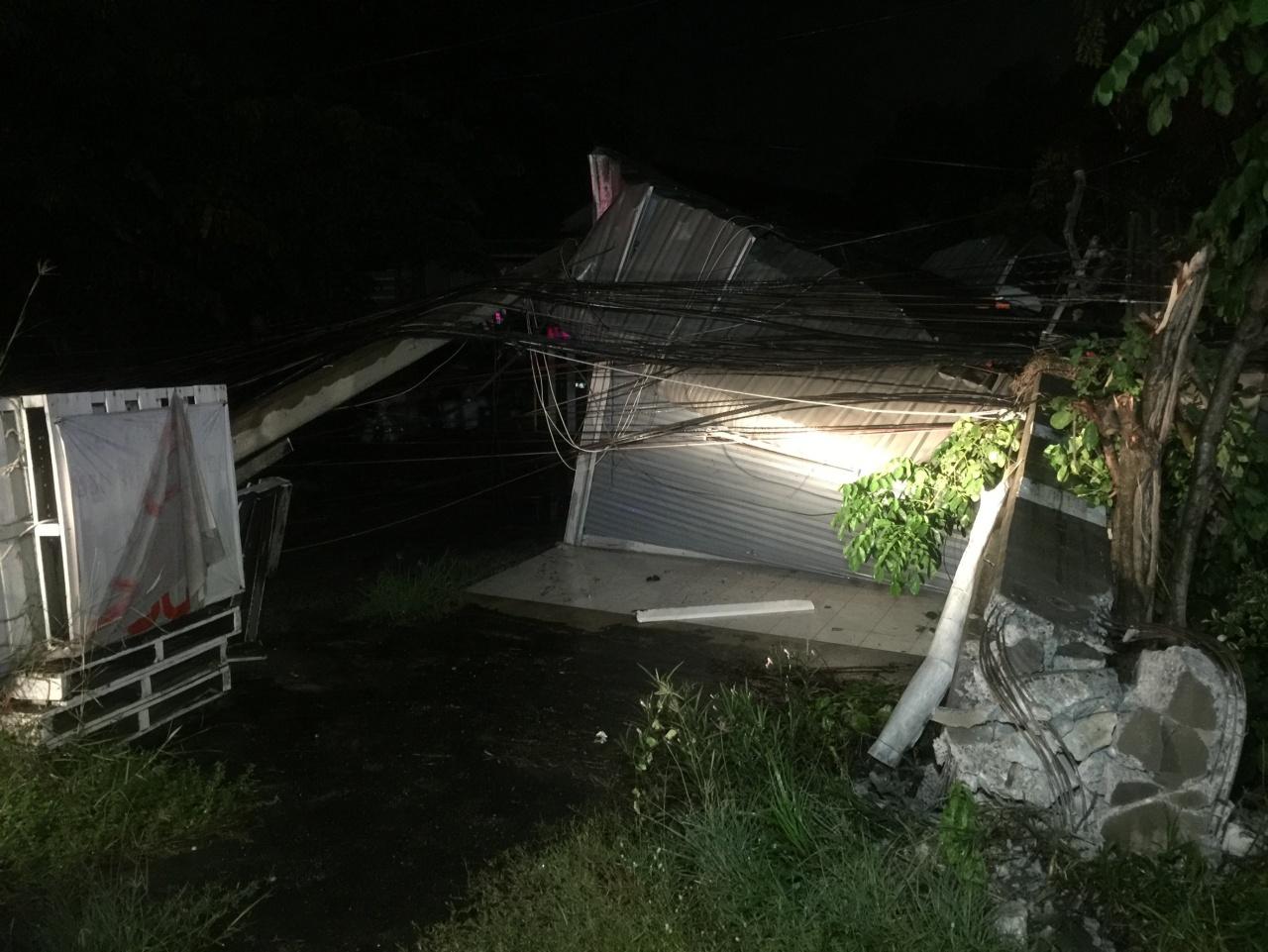 เกิดเหตุรถพ่วง 18 ล้อ เสียหลักชนเสาไฟฟ้าข้างทาง เสาสัญญาณไฟจราจร หักโค่นรวม 8 ต้น ล้มทับบ้านคนเสียหาย 4 หลัง ท่อส่งน้ำประปาแตก