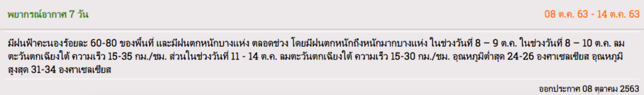 (ข้อมูลจาก กรมอุตุนิยมวิทยา, weather.com, ทวิตเตอร์ @BKK_BEST)