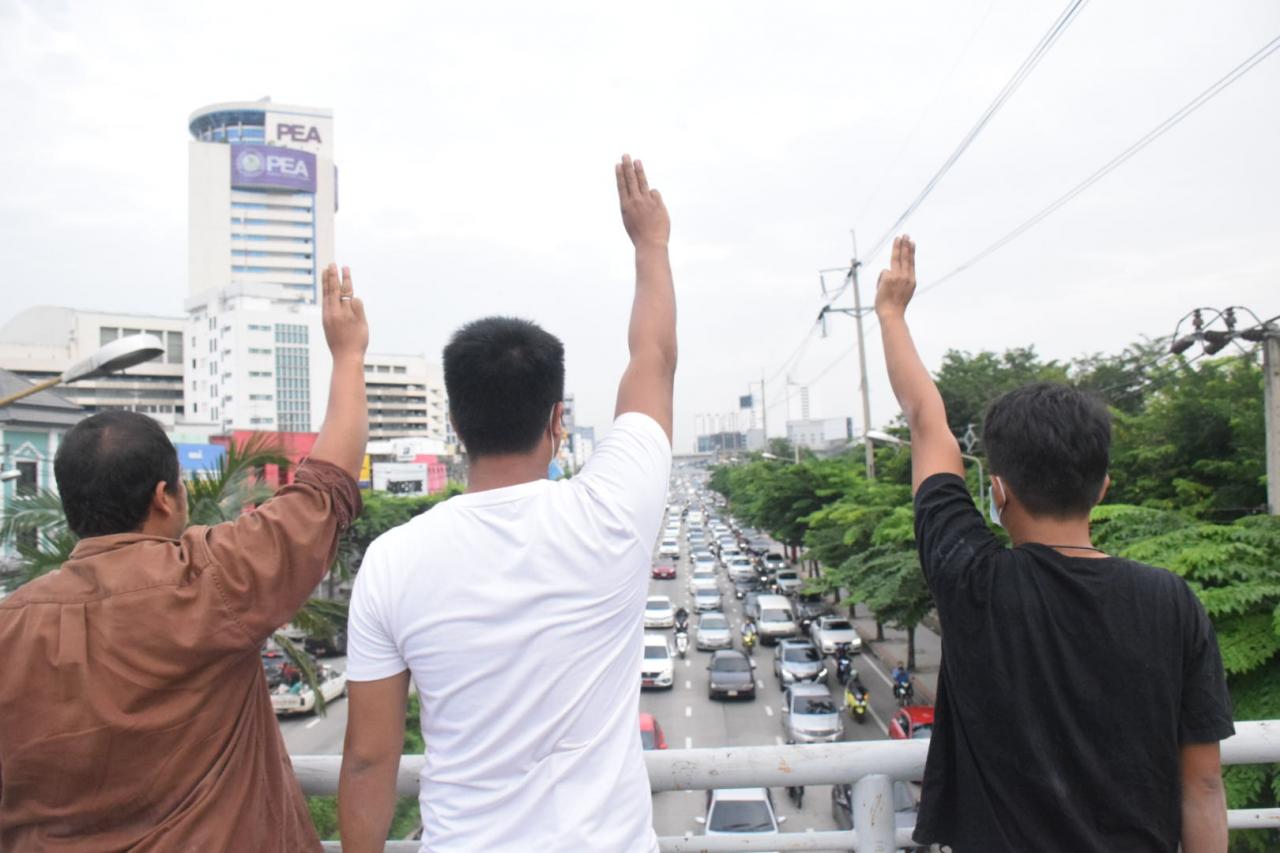 ขณะที่มีการนำรถขนส่งผู้ต้องหาออกจากพื้นที่ไปหลายคัน การจราจรเริ่มติดขัดทั้ง 2 ฝั่ง แต่ยังไม่พบกลุ่มมวลชนมาปรากฏกาย.