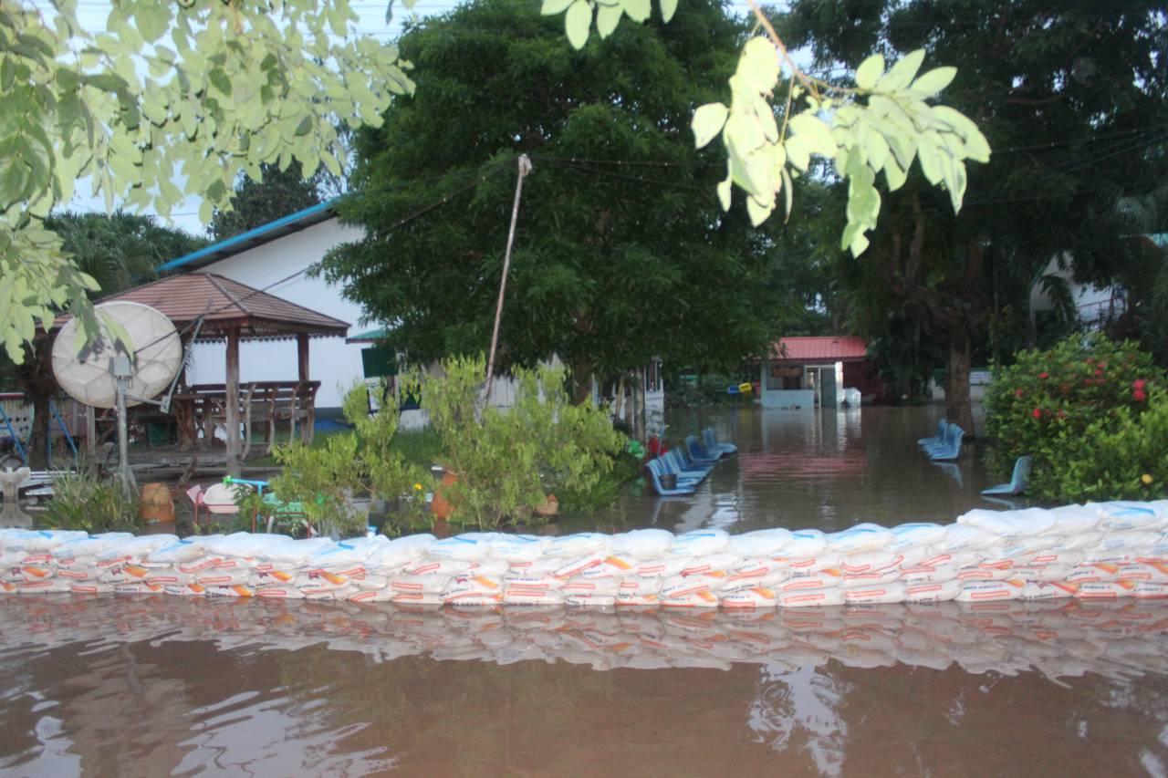 น้ำท่วมโคราช ผู้ว่าฯ ห่วงอำเภอโชคชัย พื้นที่รับน้ำต่อจากเมืองปักธงชัย ล่าสุดน้ำล้อมรอบพื้นที่ทิศตะวันออกและทิศใต้ โดยทะลักท่วมแล้ว 5 ตำบล ขณะที่ปรางค์พะโค 900 ปี ยังจมต่อเนื่อง