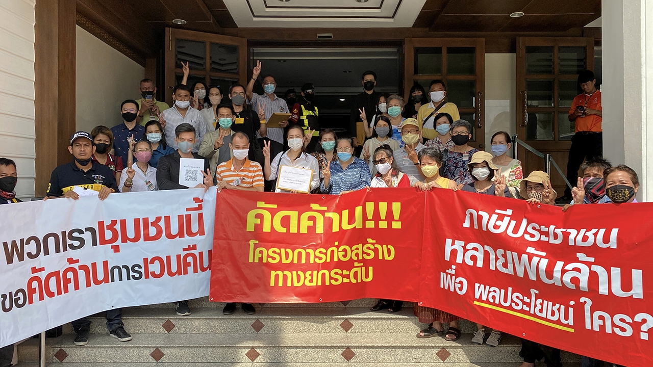 ชาวบ้านชุมชนหลังหมอชิตเก่าแห่ร้อง กทม.เวนคืนที่ดินไม่เป็นธรรม โดยเมื่อวันที่ 5 พ.ย. ที่ศาลาว่าการกรุงเทพมหานคร มีตัวแทนประชาชนที่อาศัยอยู่ชุมชนหลังหมอชิตเก่า 30 กว่าคน เข้ายื่นหนังสือถึง พล.ต.อ.อัศวิน ขวัญเมือง ผู้ว่าฯ กทม. เพื่อคัดค้านการเวนคืนที่ดินเพื่อก่อสร้างทางยกระดับหรือถนนลอยฟ้าเชื่อมโครงการคอมเพล็กซ์ของเอกชนที่ได้รับสัมปทานจากกรมธนารักษ์บนพื้นที่หมอชิตเก่า มีนางวิภารัตน์ ไชยานุกิจ เลขานุการผู้ว่าฯ กทม. เป็นตัวแทนมารับหนังสือ