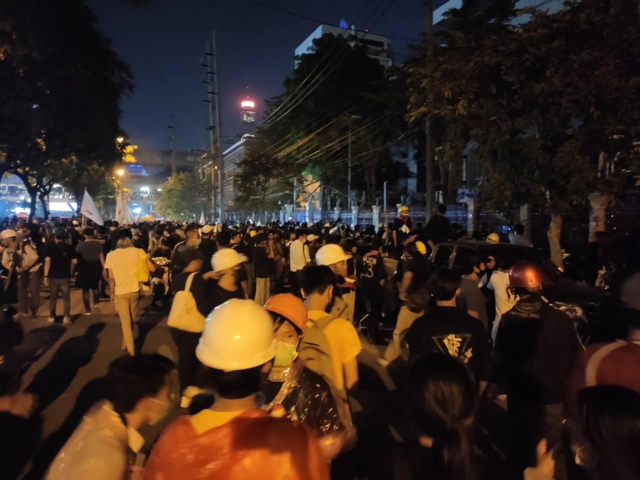 จากนั้นกลุ่มได้เคลื่อนย้ายมายังหน้าสำนักงานตำรวจแห่งชาติ กระทั่งเมื่อเวลา 20.04 น.กลุ่มผู้ชุมนุมได้ขว้างปาสิ่งของ เข้ามาภายในสำนักงานตำรวจแห่งชาติ ในส่วนความเสียหายที่เกิดขึ้นบริเวณป้ายสำนักงานตำรวจแห่งชาติ รวมถึงทรัพย์สินต่างๆ ยังต้องตรวจสอบ และสำรวจความเสียหายว่ามีอะไรบ้าง จากนั้นจะได้ผู้ที่ได้รับอำนาจไปแจ้งความร้องทุกข์ เพื่อดำเนินคดีกับผู้กระทำความผิด