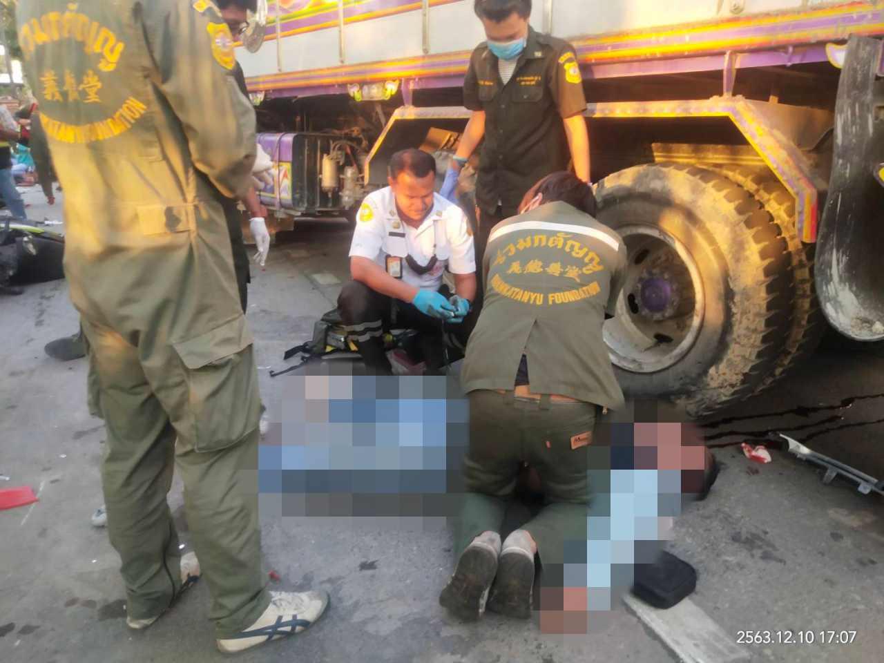 เกิดอุบัติเหตุบนถนน หน้าสวนเบญจกิติ เก๋งยาริส เสียหลักข้ามเลนชนกวาดทั้งจยย.รถเก๋ง รถบรรทุกดิน มีผู้เสียชีวิต 2 ศพ หนึ่งในนั้นเป็นคนขี่จยย.ส่งแกร็บฟู้ด คนขับสาววัย 32 ปี อ้างอ่อนเพลีย หลับใน