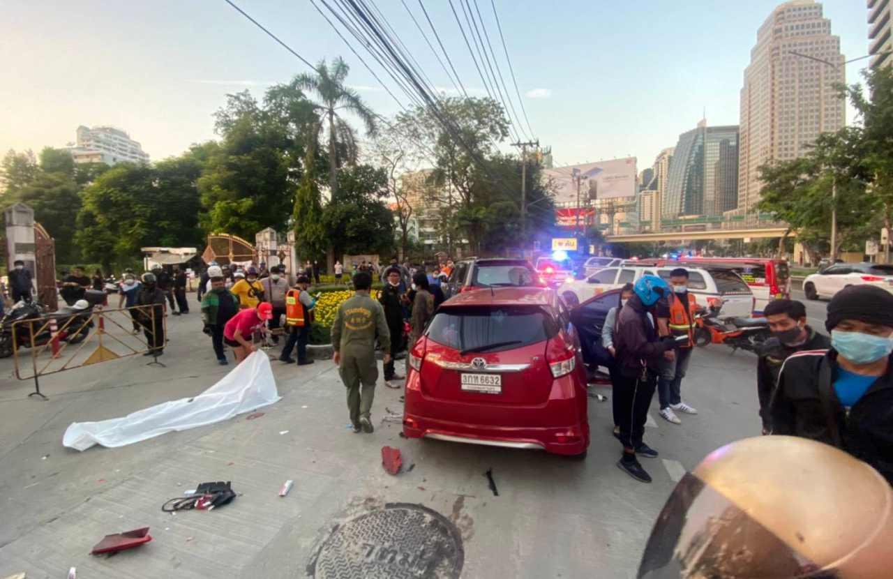 เวลา 17.40 น. วันที่ 10 ธ.ค. ร.ต.ท.เตมีย์ นาคะวิสุทธิ์ รองสว. (สอบสวน)สน.ทองหล่อ ได้รับแจ้งอุบัติเหตุรถยนต์ชน มีผู้เสียชีวิต 2 ราย บาดเจ็บ 2 ราย เหตุเกิดที่บริเวณหน้าสวนเบญจกิติ ถนนรัชดาภิเษก แขวงและเขตคลองเตย กรุงเทพฯ จึงรายงานให้ผู้บังคับบัญชาทราบ พร้อมด้วยแพทย์โรงพยาบาลจุฬาลงกรณ์ อาสากู้ภัยมูลนิธิร่วมกตัญญู ร่วมตรวจสอบ