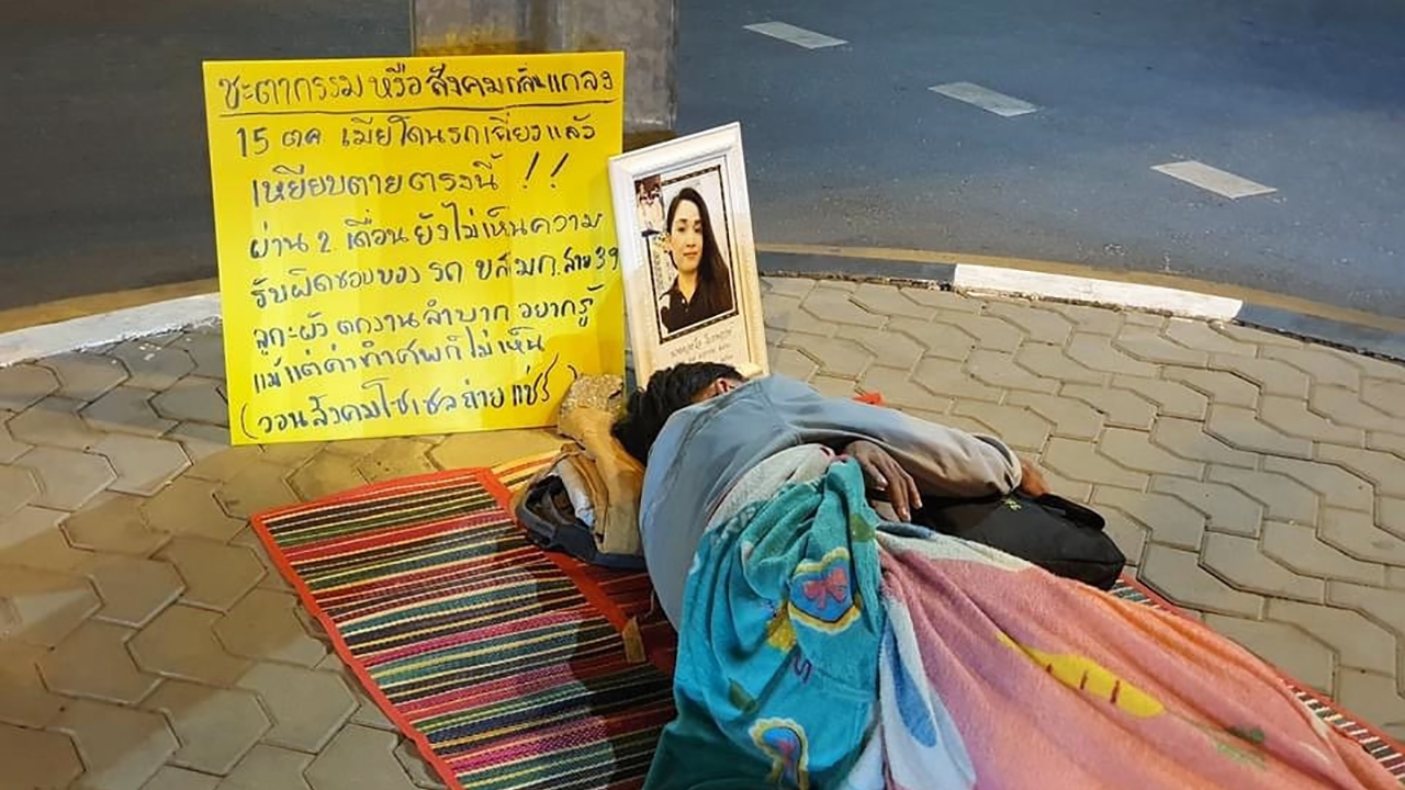 กรณี “หนุ่มนอนประท้วง เกาะกลางถนนแยกรัชโยธิน หลังเกิดอุบัติเหตุ รถเมล์โดยสารทับภรรยาเสียชีวิต”