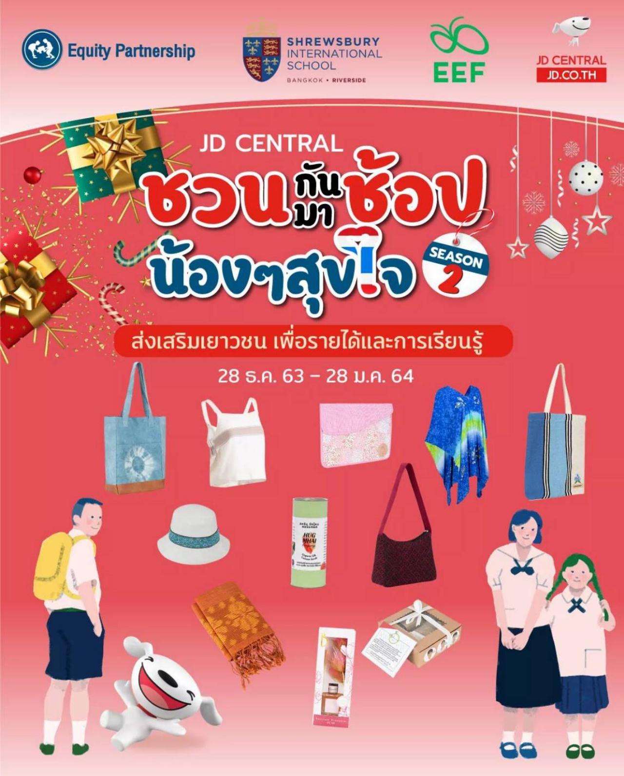 กสศ.ร่วม JD CENTRAL และ เครือ ร.ร.เพื่อความเสมอภาคทางการศึกษา เปิดแคมเปญ “ชวนกันมาช้อป น้องๆ สุขใจ” ส่งสุขปีใหม่ด้วยผลิตภัณฑ์จากตลาดวาดฝัน Equity – Partnership รายได้ไม่หักค่าใช้จ่าย มอบให้แก่นร.ทุนเสมอภาค เพื่อต่อยอดทักษะอาชีพ