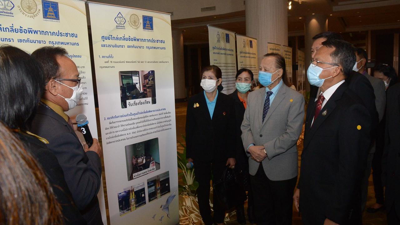 นายเรืองศักดิ์ กล่าวต่อว่า กรมคุ้มครองสิทธิและเสรีภาพได้ขับเคลื่อนงาน ร่วมกับหน่วยงานภาครัฐและภาคประชาชน จึงส่งผลให้มีกระบวนการไกล่เกลี่ยข้อพิพาทอย่างเป็นรูปธรรมและต่อเนื่อง การจัดงานในวันนี้มีวัตถุประสงค์เพื่อนำเสนอผลงานไกล่เกลี่ยข้อพิพาท ในรูปแบบนิทรรศการ บทเรียนแห่งความสำเร็จของหน่วยงานของรัฐ และศูนย์ไกล่เกลี่ยข้อพิพาทภาคประชาชนในพื้นที่กรุงเทพมหานคร จัดทำบันทึกความร่วมมือเพื่อส่งเสริมการดำเนินงานการไกล่เกลี่ยข้อพิพาท และสิทธิมนุษยชนศึกษา รวมถึงขับเคลื่อนแผนสิทธิมนุษยชนแห่งชาติ ฉบับที่ 4 และสร้างวัฒนธรรมการไกล่เกลี่ยข้อพิพาทในสังคมไทย ระหว่างกรมคุ้มครองสิทธิและเสรีภาพ กับมหาวิทยาลัยเกษตรศาสตร์ มหาวิทยาลัยนเรศวร มหาวิทยาลัยหัวเฉียวเฉลิมพระเกียรติ มหาวิทยาลัยมหามกุฏราชวิทยาลัย และมหาวิทยาลัยเกริก การจัดพิธีมอบป้ายศูนย์ไกล่เกลี่ยข้อพิพาทภาคประชาชนพื้นที่ 50 เขต ของกรุงเทพมหานคร เพื่อมอบเป็นของขวัญปีใหม่ให้คนกรุงเทพฯ โดยในปี 2564 กรมคุ้มครองสิทธิและเสรีภาพ จะดำเนินการให้มีศูนย์ไกล่เกลี่ยข้อพิพาทภาคประชาชนให้ครอบคลุมระดับอำเภอในทุกจังหวัด ซึ่งในปีที่ผ่านมาได้จัดตั้งศูนย์ไกล่เกลี่ยข้อพิพาทภาครัฐ สำนักงานยุติธรรมจังหวัดแล้ว 8 แห่ง และส่งเสริมให้ประชาชนรวมตัวกันจัดตั้งศูนย์ไกล่เกลี่ยข้อพิพาทภาคประชาชน 128 แห่งทั่วประเทศ เพื่อให้ประชาชนเข้าถึงบริการ การไกล่เกลี่ยข้อพิพาทได้อย่างสะดวกรวดเร็วตามนโยบายของรัฐบาล