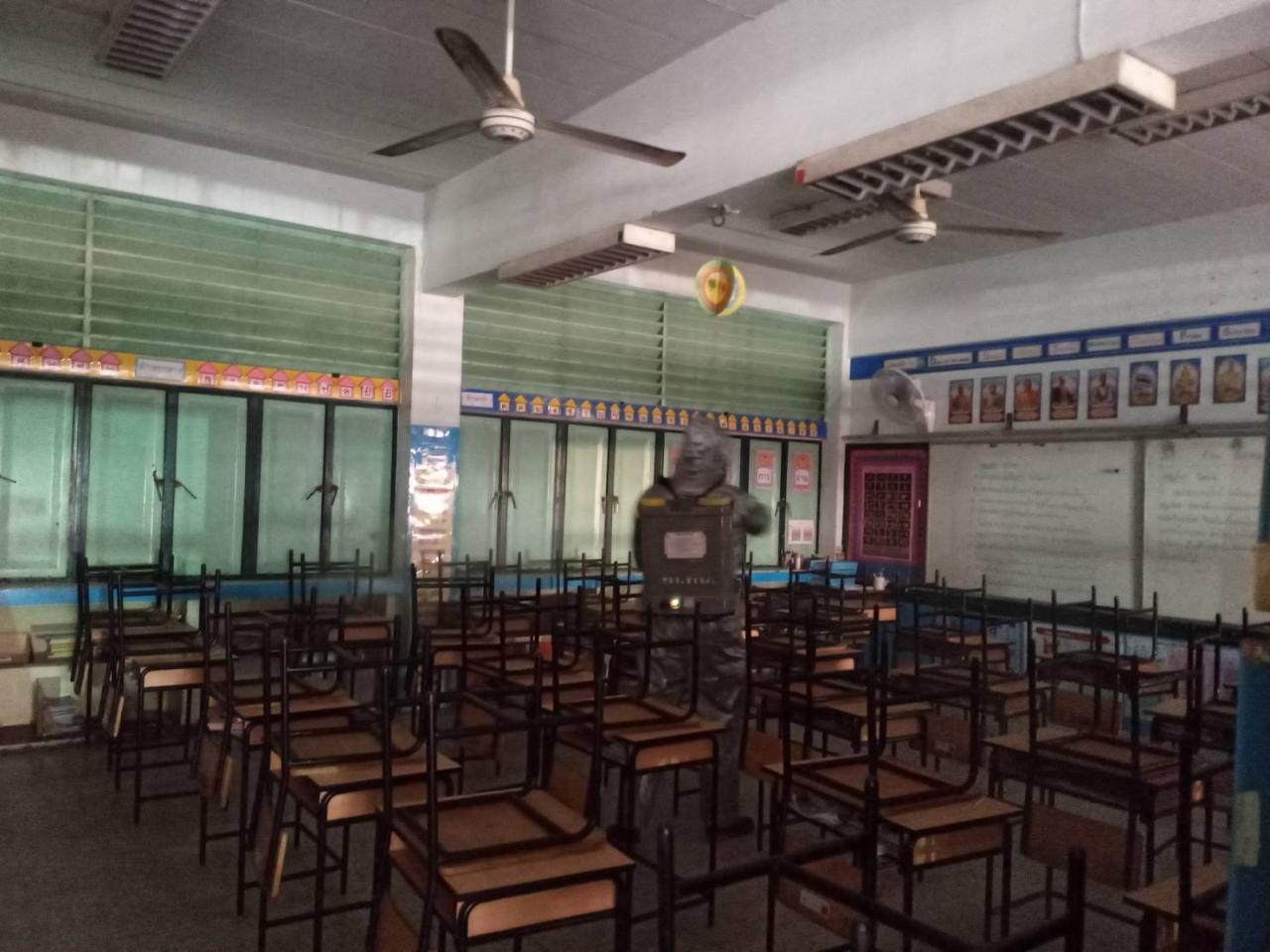 โดย ชุดปฏิบัติการ ฉีดพ่นสารชะล้างการปนเปื้อน ของกรมวิทยาศาสตร์ทหารบก จะดำเนินการจัดชุดปฏิบัติการออกพ่นยาชะล้างการปนเปื้อนฯ ตั้งแต่วันจันทร์ที่ 25-29 ม.ค.64 สนับสนุนให้กับโรงเรียนต่างๆ ในเขตบางเขน และเขตจตุจักร ตามที่ได้รับการประสาน เพื่อสนับสนุนการเตรียมความพร้อมของสถานศึกษา ในการปรับสภาวะแวดล้อมให้เอื้อต่อการเรียนการสอน รวมทั้งสร้างสภาวะแวดล้อมและสุขอนามัยที่ดีให้กับครูและนักเรียน