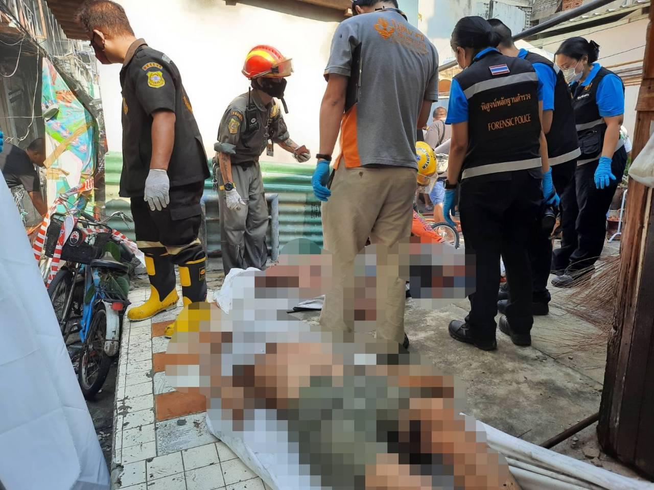ความคืบหน้าล่าสุด เมื่อช่วงสายที่ผ่านมา จนท.เข้าตรวจสอบบ้านต้นเพลิง ที่ชั้นล่างใต้ซากปรักหักพังของตัวบ้านชั้น 2 ที่ถล่มลง ใกล้ประตูทางเข้าห้องน้ำพบศพ นายมนตรี ตรงจรรยา อายุ 57 ปี ประกอบอาชีพค้าของเก่า สวมกางเกงขาสั้นสีเขียว ไม่สวมเสื้อ ภายในห้องน้ำพบศพ นางน้อย ศรีเมฆ อายุ 88 ปี มารดานายมนตรี สวมเสื้อแขนกุดลายเขียวน้ำตาล ผ้าถุงลายน้ำเงิน สภาพทั้ง 2 ศพไม่มีรอยถูกไฟไหม้ เสียชีวิตจากการสำลักควันไฟ ประสานแพทย์เวร รพ.วชิรพยาบาล ร่วมชันสูตร และนำศพทั้ง 2 ส่งผ่าพิสูจน์ รพ.วชิรพยาบาลต่อไป
