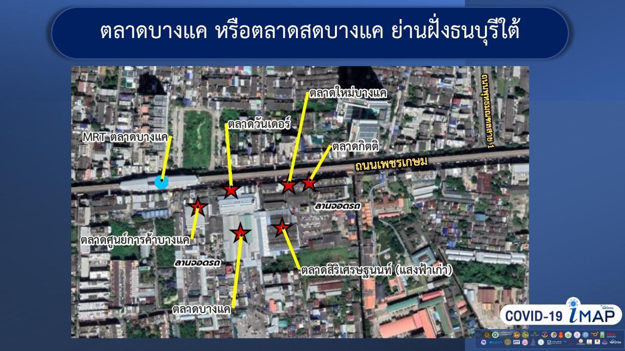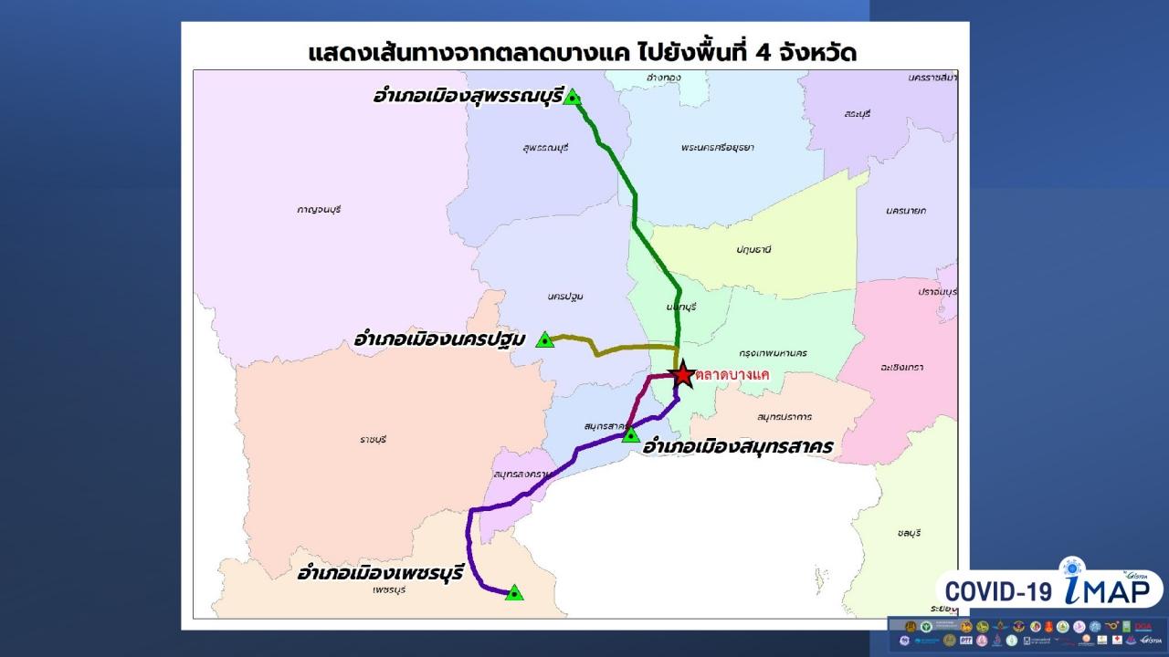 นอกจากนี้ ยังพบว่ามีการเชื่อมโยงไปยัง 4 จังหวัด คือ สุพรรณบุรี นครปฐม สมุทรสาคร และเพชรบุรี เป็นการข้ามพื้นที่ข้ามจังหวัดทำให้การติดเชื้อกระจายออกไป เนื่องจากผู้ค้ามีการรับสินค้าและเชื่อมโยงไปยังตลาดในพื้นที่อื่นๆ ทางด้านกรมควบคุมโรค มีการเก็บตัวอย่างการตรวจหาเชื้ออย่างต่อเนื่อง มีรถพระราชทานไปตรวจย่านตลาดบางแค มาเข้ารับการตรวจได้ รวมถึงต้องติดตามอย่างใกล้ชิดว่าจะมีการเฝ้าระวังทางระบาดวิทยาอย่างไร