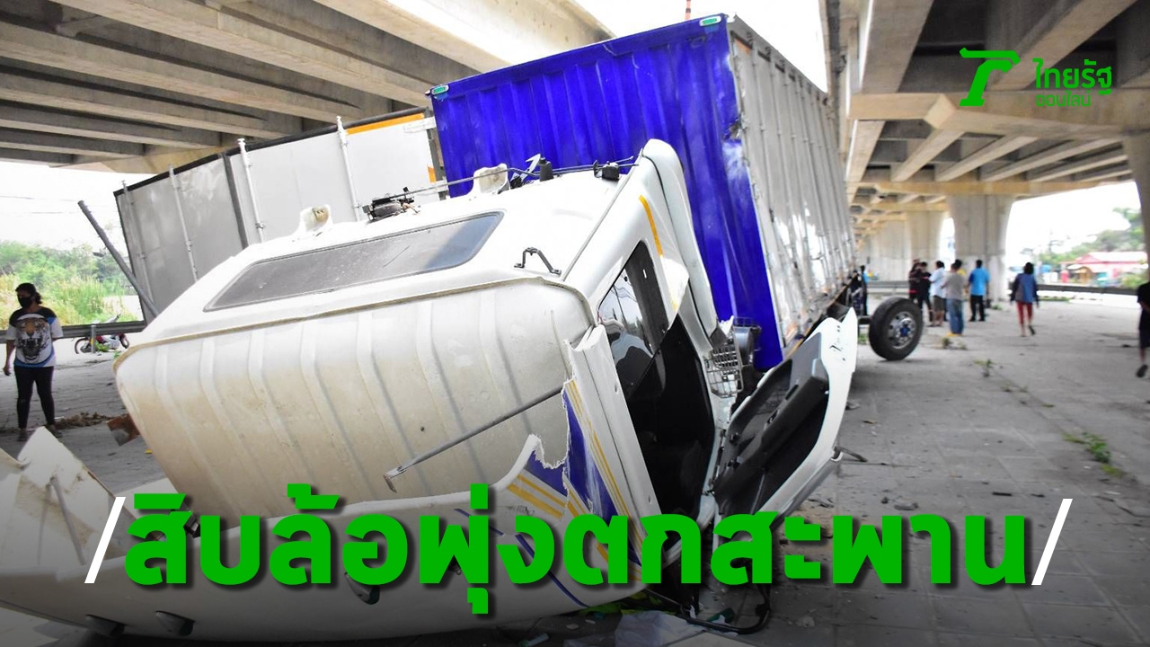เมื่อเวลา 13.00 น. วันที่ 18 มี.ค.64 ร.ต.อ.ณรงค์ฤทธิ์ จันทร์หง่อม รองสว.(สอบสวน) สน.ลำผักชี รับแจ้งเหตุรถบรรทุกสิบล้อตกสะพานข้ามแยกขนส่งพื้นที่ 4 ถนนสุวินทวงศ์ (ขาเข้า กทม.) แขวงลำผักชี เขตหนองจอก กทม. จึงรุดตรวจสอบที่เกิดเหตุพร้อม พ.ต.ต.อดุลย์ ยะท่าตุ้ม สว.จร.สน.ลำผักชี และเจ้าหน้าที่มูลนิธิป่อเต็กตึ๊ง อาสาสมัครศูนย์ราชพฤกษ์ อาสาสมัครกู้ภัยร่มไทร