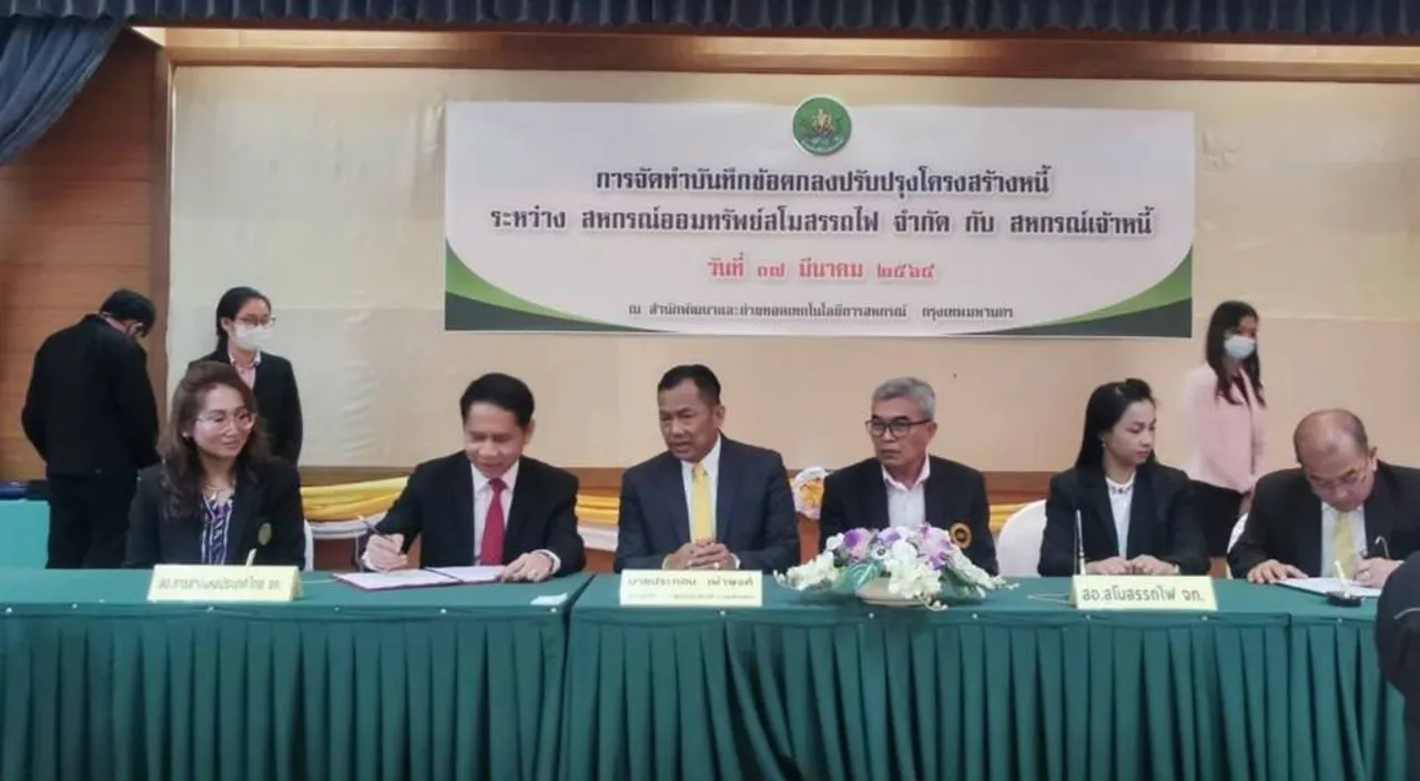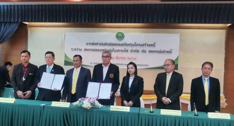 ทั้งนี้ ทางสหกรณ์ออมทรัพย์สโมสรรถไฟ จำกัด (สอ.สรฟ.) ได้มีการลงนามในบันทึกข้อตกลงร่วมกัน (เอ็มโอยู) ชำระหนี้คืน 13 สหกรณ์เจ้าหนี้ โดยมีกรมส่งเสริมสหกรณ์ และตัวแทนสันนิบาตสหกรณ์แห่งประเทศไทย ร่วมเป็นสักขีพยานในการทำข้อตกลงดังกล่าว ซึ่งเป็นผลมาจากการหารือของทุกฝ่ายที่เกี่ยวข้องที่ยอมรับการชำระหนี้คืนแบบขั้นบันไดในระยะเวลา 13 ปี รวมถึงอัตราดอกเบี้ยเงินกู้ที่เจ้าหนี้ยอมลดลงจากร้อยละ 5 ลงมาเหลือร้อยละ 2 เพื่อให้ สอ.สรฟ.สามารถดำเนินกิจการของสหกรณ์และเงินมีสภาพคล่องคงเหลือนำมาชำระหนี้ได้ตามข้อตกลง ซึ่งทาง กสส.จะได้ติดตามการชำระหนี้ของสอ.สรฟ.เพื่อให้เป็นไปตามกรอบข้อตกลงที่ทำร่วมกัน