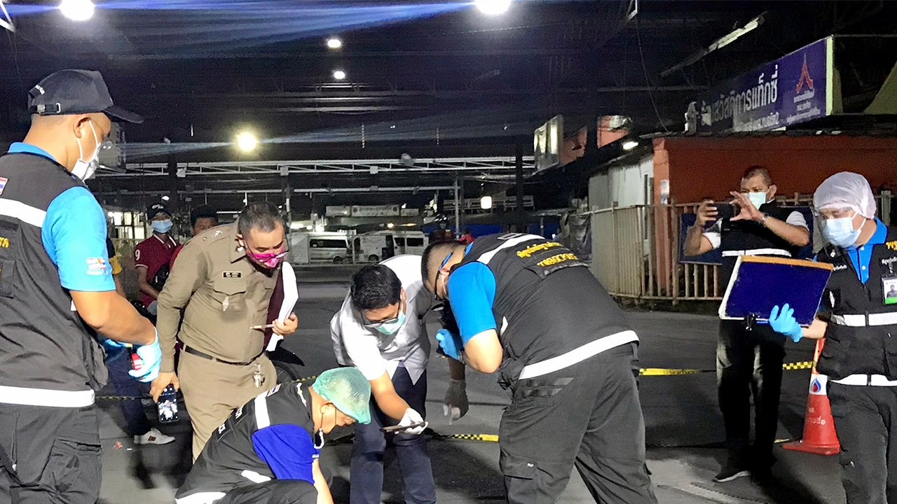ที่เกิดเหตุอยู่บนถนนช่วงทางเข้าออกลานจอดรถพบศพนายสมศักดิ์ เกียรติกนก อายุ 44 ปี ชาว จ.นครราชสีมา นอนหงายจมกองเลือด สภาพสวมเสื้อยืดแขนสั้นสีขาว กางเกงขาสามส่วนสีน้ำเงิน ถูกแทงด้วยมีดปลายแหลมเข้าที่อกข้างซ้ายตัดขั้วหัวใจและกลางหน้าท้อง รวม 2 แห่ง ส่วนมือมีดคือนายไชยา ถาวรเสถียร อายุ 47 ปี อาชีพรับจ้างขับรถ ยืนรอมอบตัวกับตำรวจอยู่ข้างรถตู้ยี่ห้อโตโยต้า รุ่นคอมมิวเตอร์ สีขาว ทะเบียนป้ายเหลือง 30-0675 นครปฐม พร้อมมีดปลายแหลมยาว 6 นิ้วที่ใช้ก่อเหตุ 1 เล่ม