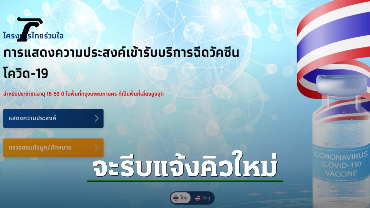 "ไทยร่วมใจ" แจ้งผู้จองคิวฉีดวัคซีน "โควิด-19" ตั้งแต่ 19 มิ.ย.เป็นต้นไป ระบบจะรีบแจ้งคิวฉีดวัคซีนใหม่เมื่อได้รับวัคซีน พร้อมย้ำห้ามกดเลื่อนคิวเอง