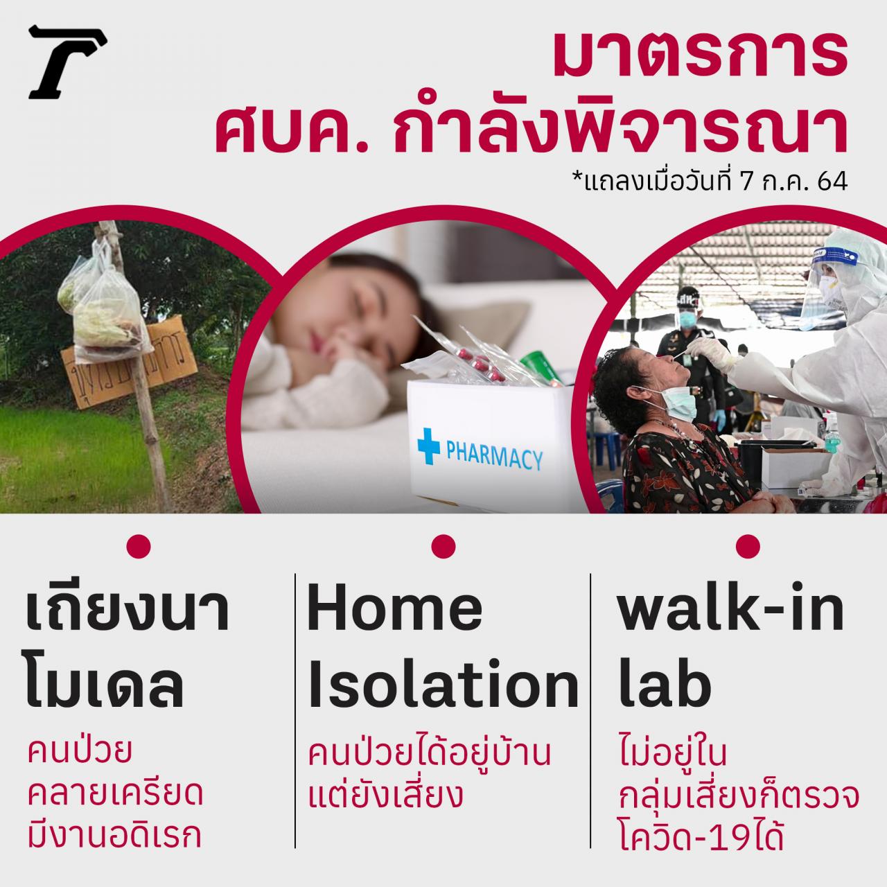 ไม่เสี่ยงโควิด-19 ก็ตรวจได้ ศบค. เตรียมเปิดศูนย์ “walk-in lab” ให้คนกรุง สนับสนุน “เถียงนาโมเดล” หลังพบผู้ป่วยไม่เครียด ขณะที่ “Home Isolation” ต้องพิจารณารอบคอบ บางบ้านที่พร้อมเท่านั้น