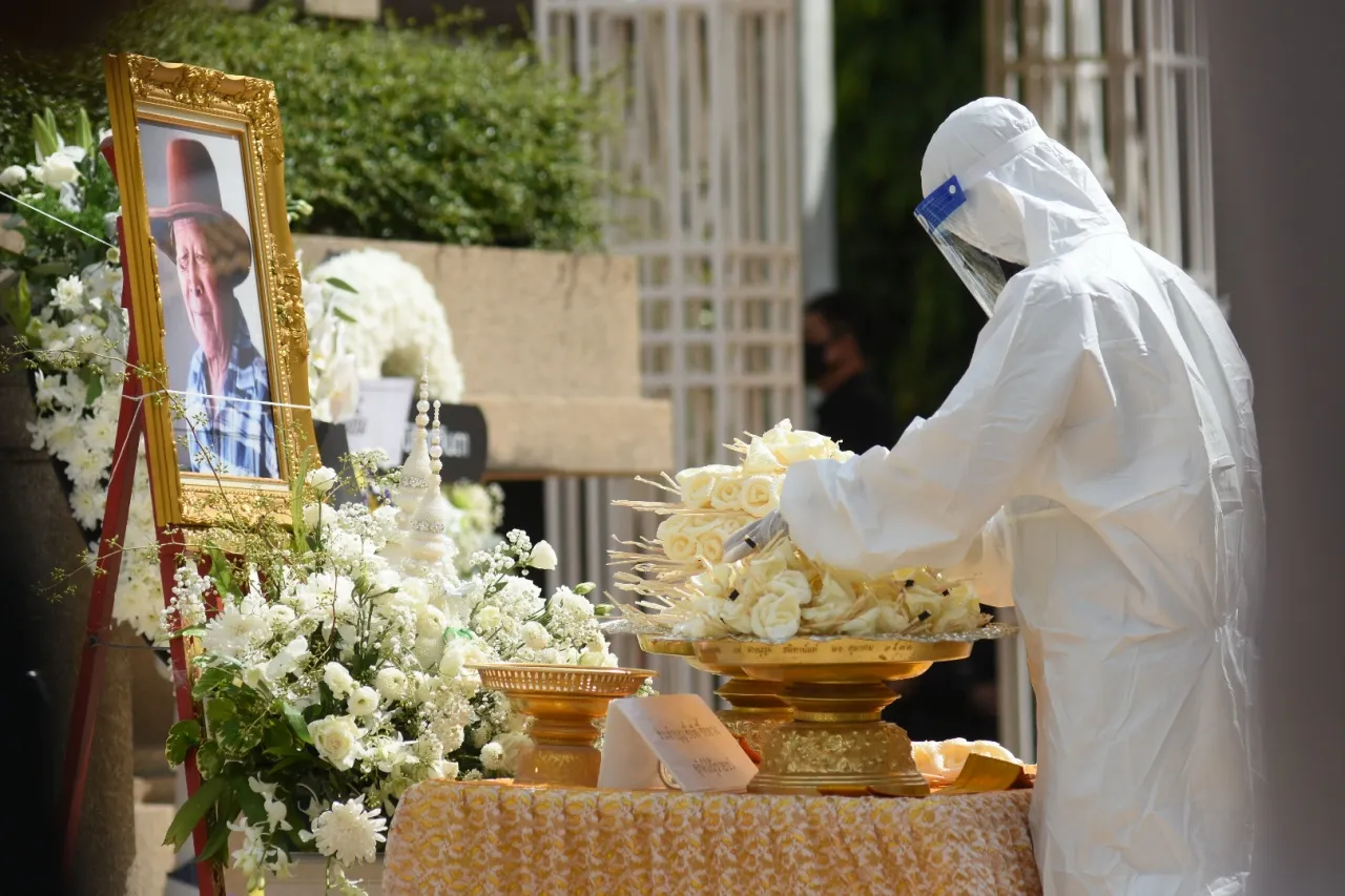 พิธีการเป็นไปอย่างกระชับ เรียบง่าย ตามมาตรการป้องกันการแพร่กระจายเชื้อโควิด-19 โดยมีพระสงฆ์สวดอภิธรรมศพ 1 จบ แล้วเปิดให้คนในครอบครัว คนสนิท ทยอยวางดอกไม้จันทน์ที่โต๊ะเชิงบันไดขึ้นเมรุทีละคนจนครบ จากนั้นก็ทำการฌาปนกิจทันที และเก็บอัฐินำมาบำเพ็ญกุศลสวดพระอภิธรรมอัฐิ ที่ศาลา 16 ในเวลา 18.00 น. เป็นเวลา 3 คืน