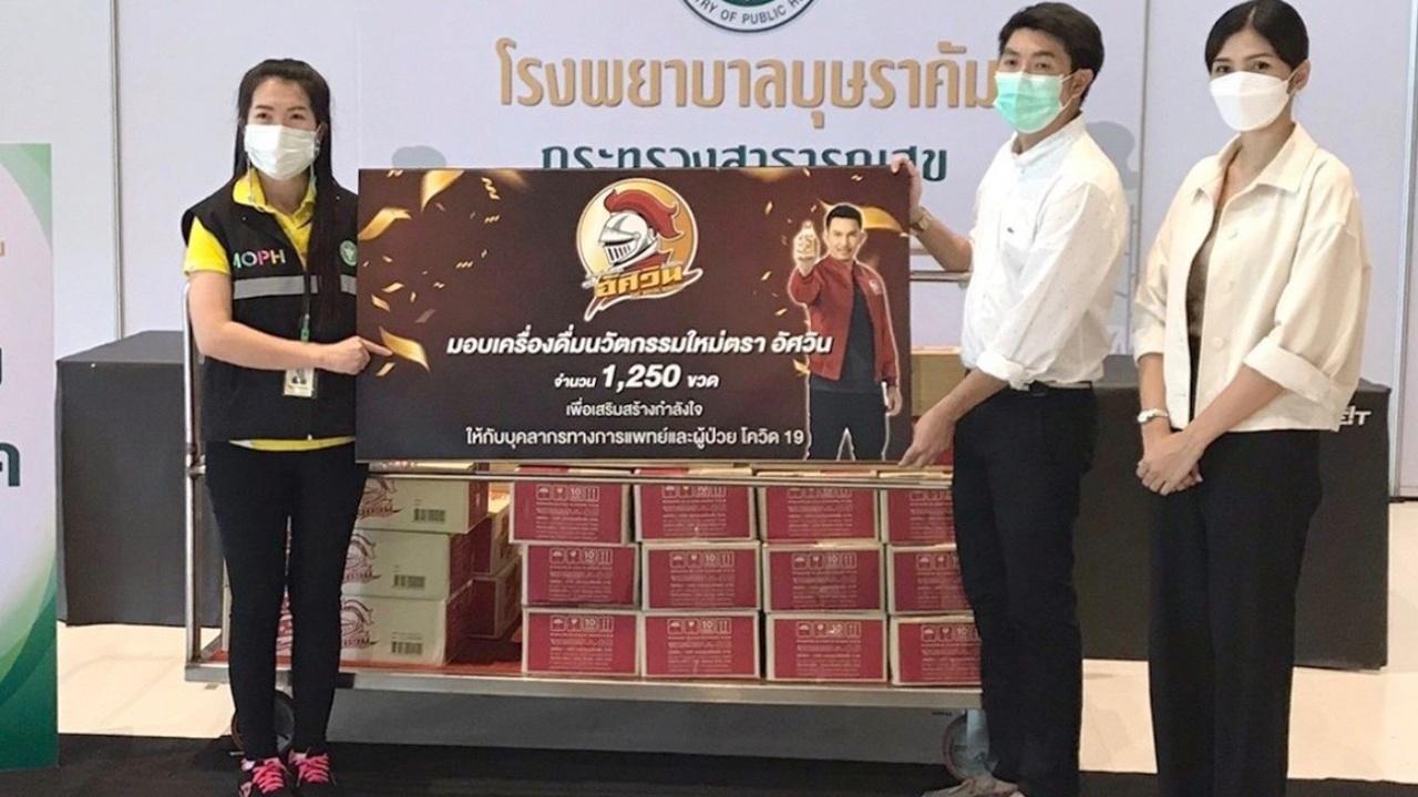 อัศวิน มอบเครื่องดื่มนวัตกรรมสารสกัดสมุนไพรให้ผู้ป่วยโควิด-19 ระหว่างรอเตียง ถวายเป็นพระกุศลแด่พระองค์เจ้าโสมสวลีฯ