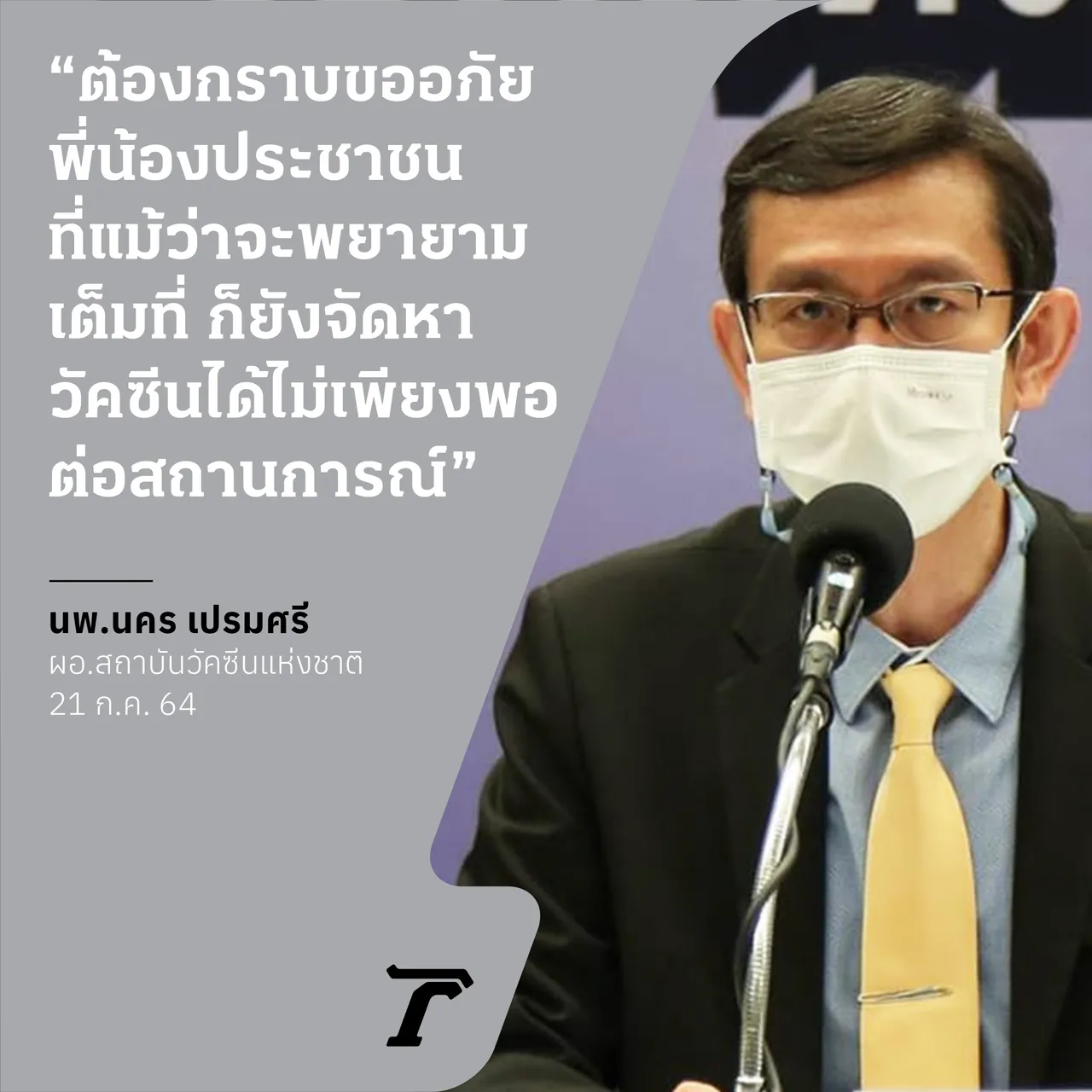 “นพ.นคร” ผอ.สถาบันวัคซีนแห่งชาติ แถลงขอโทษประชาชน จัดหาวัคซีนไม่ทันต่อสถานการณ์โควิด-19 ระบาดในไทยแม้จะพยายามเต็มที่