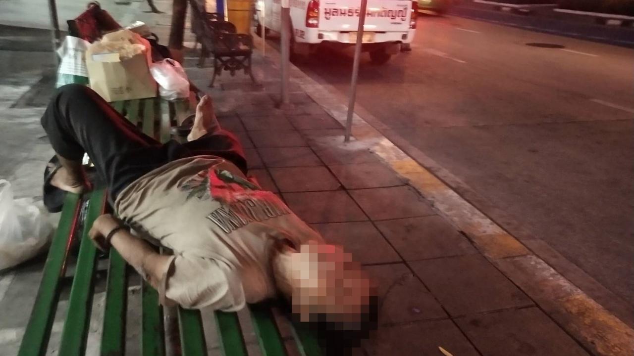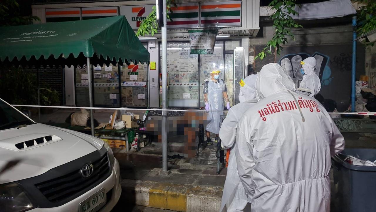 ที่เกิดเหตุพบศพชายอายุประมาณ 70 ปี นอนหงายเสียชีวิต อยู่บนเก้าอี้ยาวรอรถเมล์ คาดติดโควิดและเสียชีวิตมาแล้ว 1-2 ชั่วโมง โดยมีถุงหลายใบใส่ของเก่ากองอยู่ข้างๆ ใกล้กันพบหญิงอายุประมาณ 60 ปี นอนหายใจรวยริน มีอาการไข้ขึ้นสูง อยู่บนเก้าอี้ยาวเช่นกัน พูดกับเจ้าหน้าที่ว่า "อยากไปโรงพยาบาล"