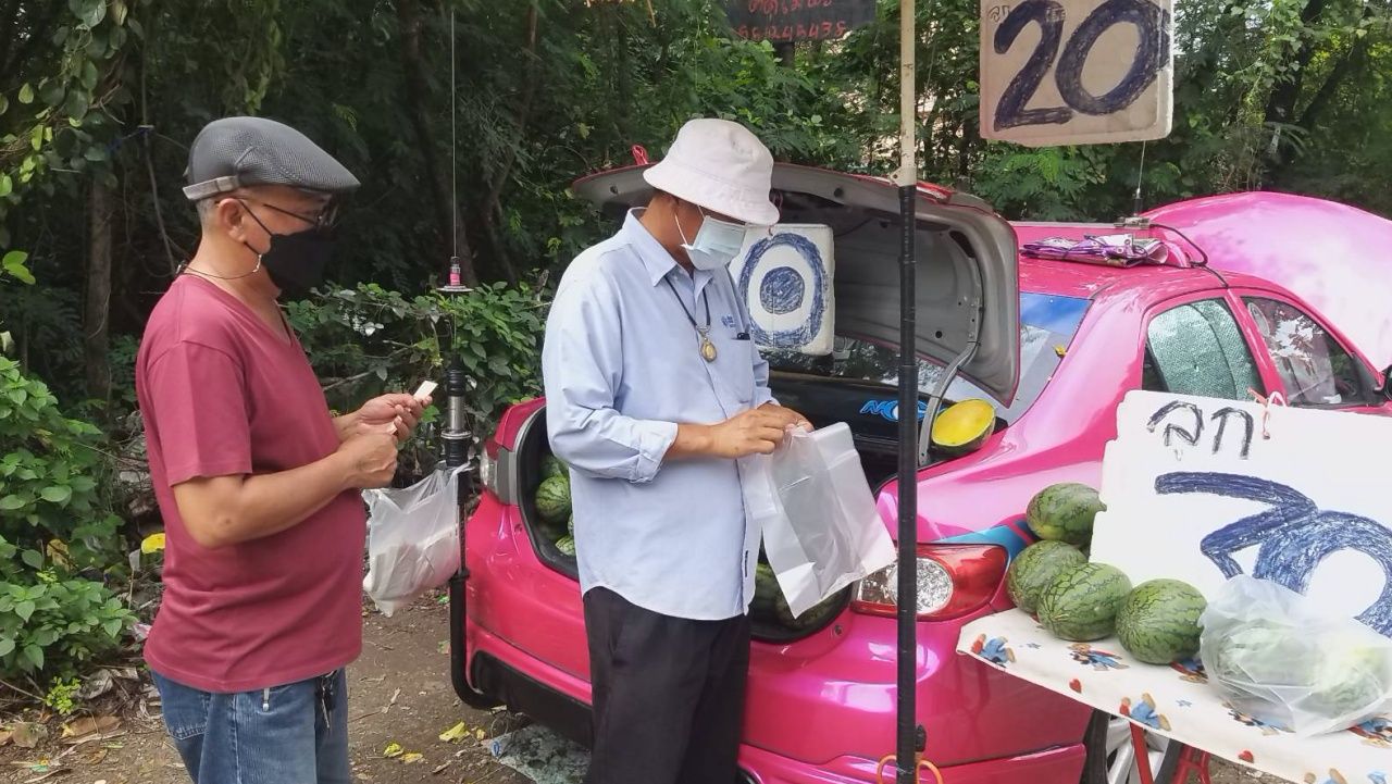 โชเฟอร์แท็กซี่ที่ผันตัวเป็นพ่อค้าแตงโม เล่าต่อว่า เกิดมาไม่เคยค้าขายเลย วันแรกรู้สึกอาย เอาแตงโมใส่มาเต็มรถ ทั้งกระโปรงหลังและห้องโดยสาร เผลอเปิดประตูรถ แตงโมกลิ้งตกลงถนนแตกเสียหายหลายลูก เรียกได้ว่าขาดทุนย่อยยับ วันต่อมาเริ่มดีขึ้น ขายมาตั้งแต่เดือน พ.ค. เริ่มมีลูกขาประจำมากขึ้น เพราะขายราคาถูก เพียงลูกละ 20-30 บาทเท่านั้น เมื่อเดือนที่แล้วมีสาววัยรุ่นขับรถโตโยต้า ฟอร์จูนเนอร์ผ่านมา แล้วจอดรถลงมาเหมาแตงโมทั้งหมดคัน คำนวณราคาคร่าวๆ แล้วไม่น่าจะเกิน 1,500 บาท แต่หญิงสาวคนนั้นโอนเงินมาให้ 4,000 บาท ถือว่าโชคดีมาก