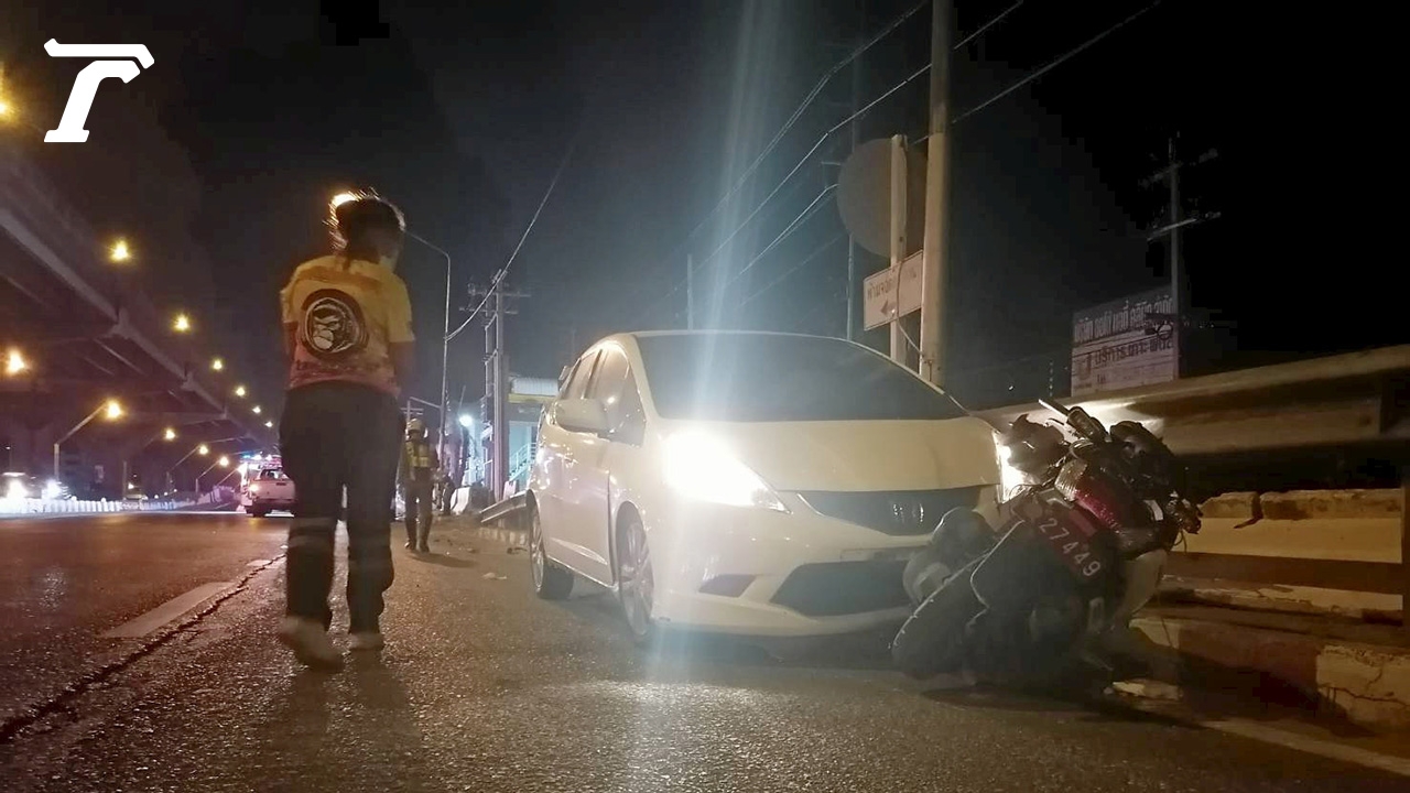 ผู้หมวดจราจร สน.สุทธิสาร ขี่ จยย.ตราโล่ ย้อนศรมาในช่องคู่ขนานถนนวิภาวดี จะไปอำนวยการจราจรตอนเช้า หลังรับแจ้งรถจอดสะสมชิดซ้ายที่ปากซอยวิภาวดี 16-20 ถึงสะพานข้ามคลองบางซื่อ เจอเก๋งฮอนด้าแจ๊ซเหินคอสะพานพุ่งชนร่างกระเด็นหมดสติ ต้องปั๊มหัวใจยื้อชีวิต ผกก.ระบุคนเจ็บอยู่ระหว่างปฏิบัติหน้าที่ ขณะที่คู่กรณีที่อยู่ในรถเก๋งเป็นวัยรุ่นชาย 1 หญิง 1 คน บาดเจ็บเล็กน้อยไม่หลบหนี แม่พาเข้าพบตำรวจ อ้างฝ่ายหญิงเป็นคนขับเพราะฝ่ายชายเมา รับเป็นกังวลเพราะคู่กรณีเป็นตำรวจ